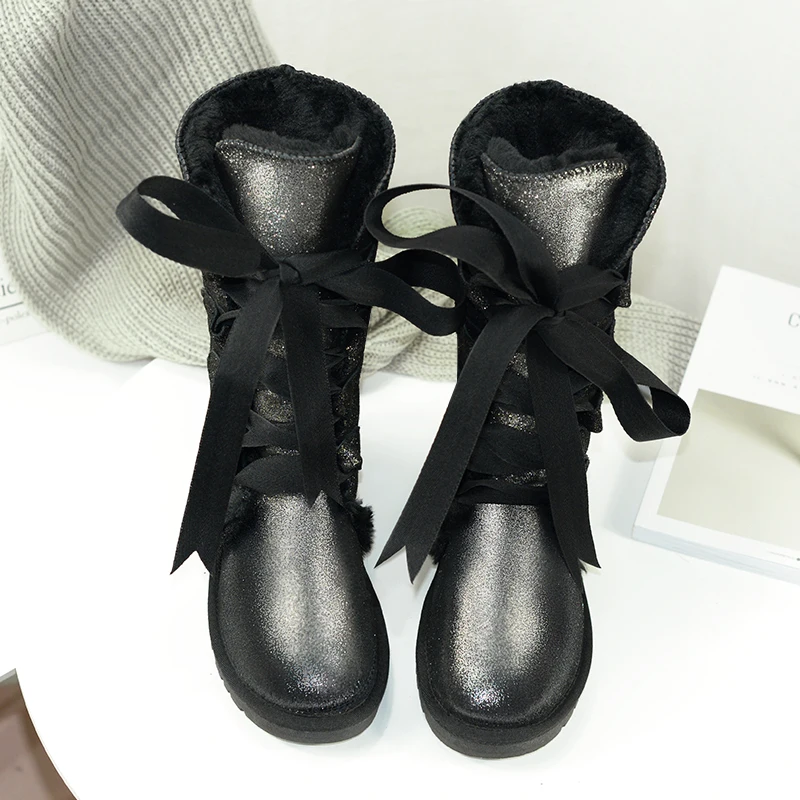 Ботинки женские зимние из натуральной кожи, на шнуровке, водонепроницаемые женские туфли