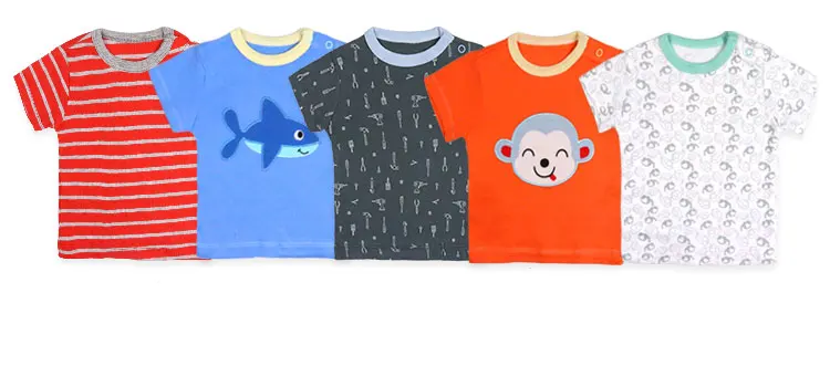 5 шт.лот, случайный цвет хлопковая футболка для маленьких мальчиков Повседневные Шорты Для маленьких мальчиков летние футболки с рукавами для новорожденных от 3 до 24 месяцев