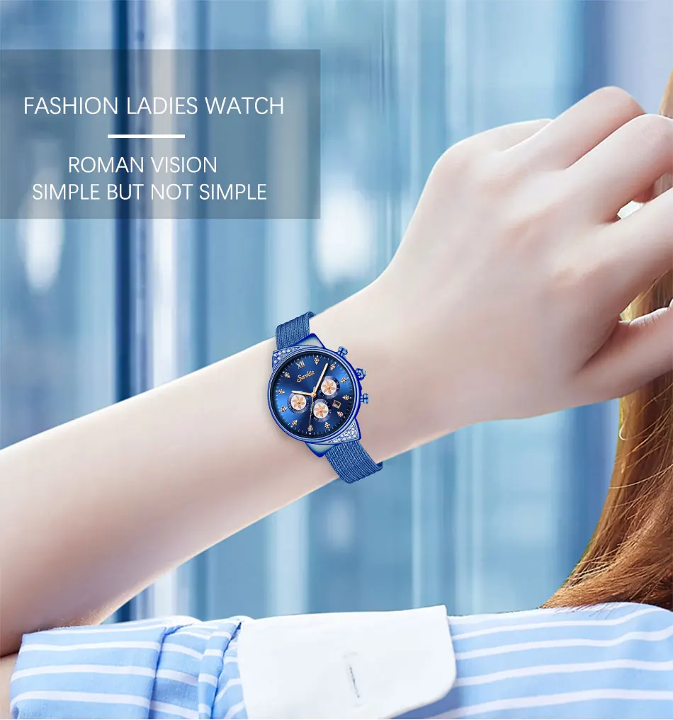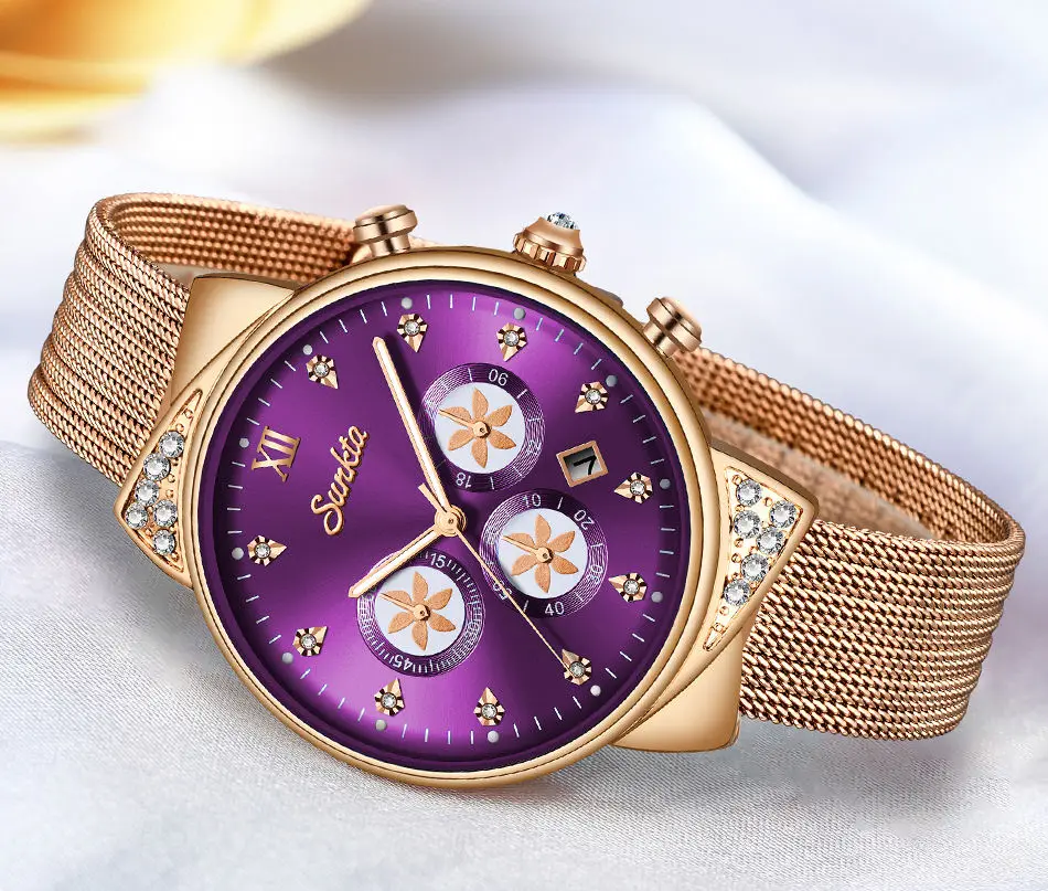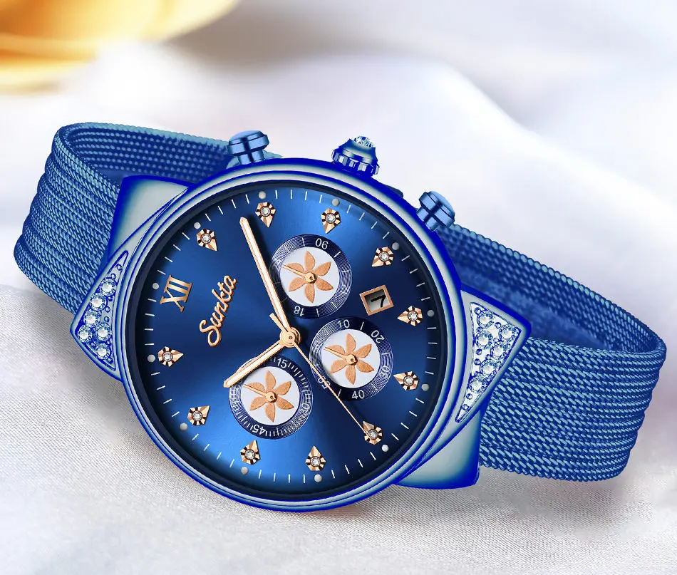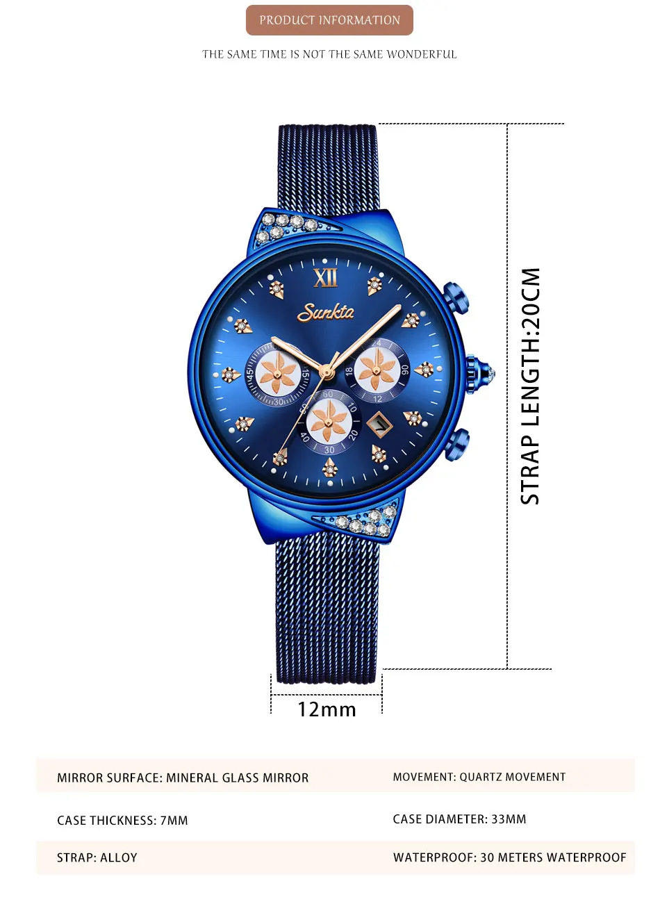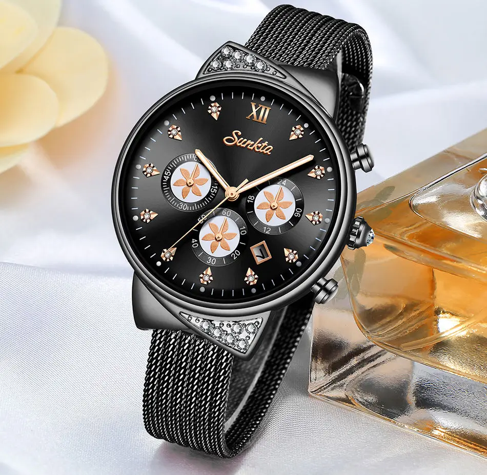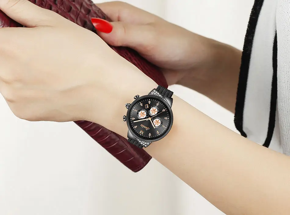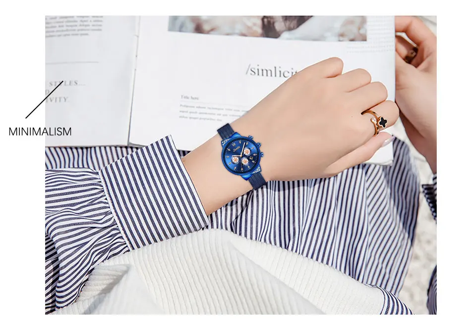 Часы женские кварцевые с сетчатым ремешком из нержавеющей стали и коробкой