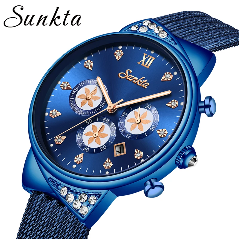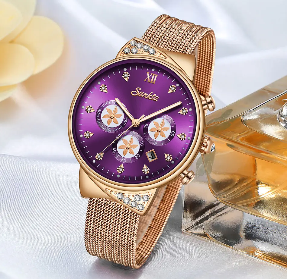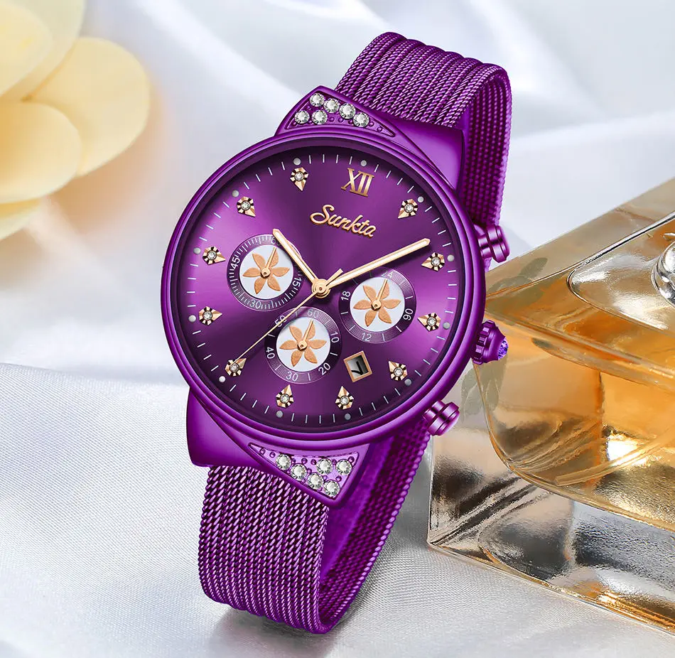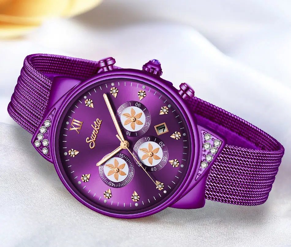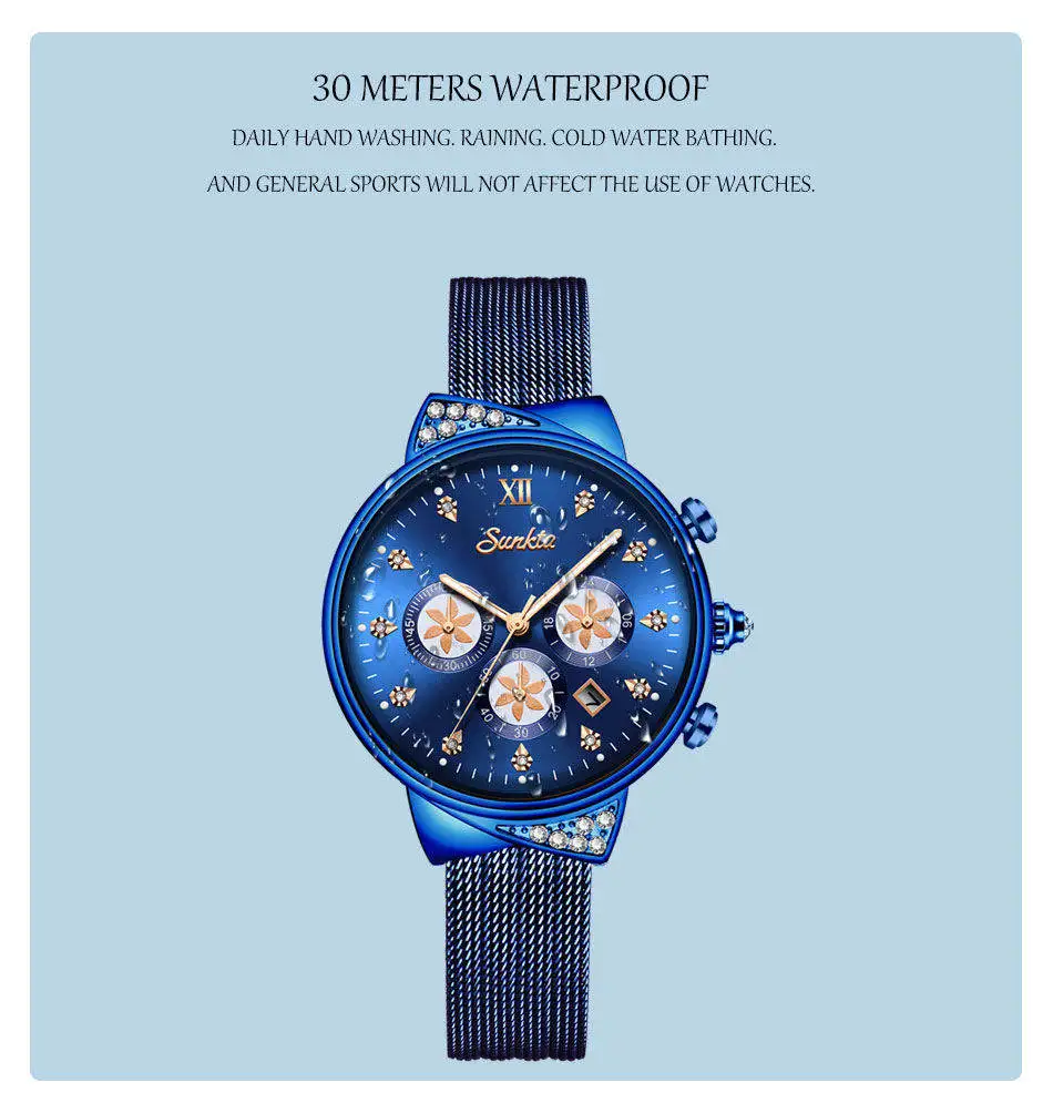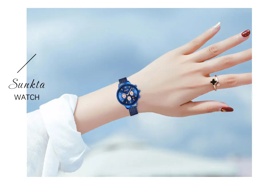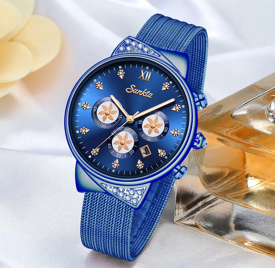 Часы женские кварцевые с сетчатым ремешком из нержавеющей стали и коробкой