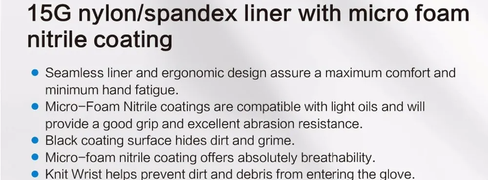 15 калибр нейлон и спандекс пряжа Бесшовная Трикотажная оболочка с микро пенопласт нитриловые ладони, пенопластовые рабочие перчатки.