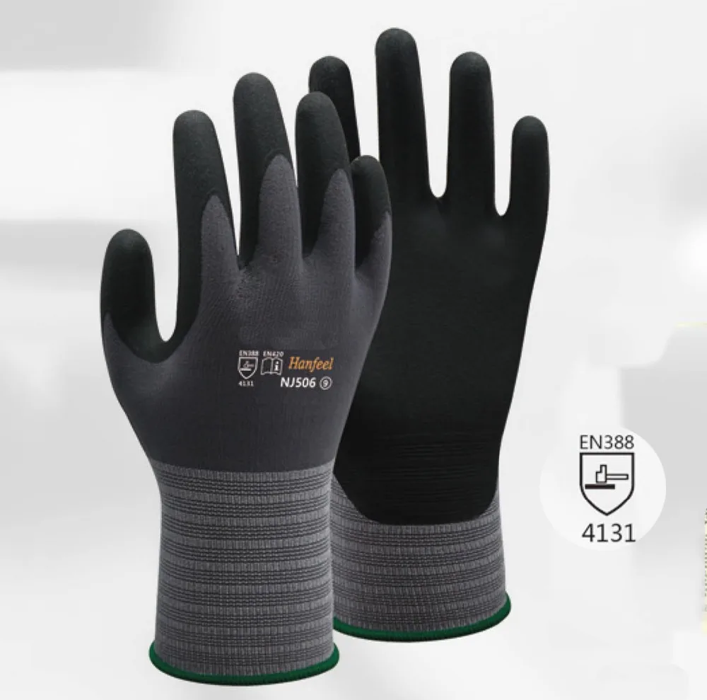 Безопасные перчатки с высокой гибкостью для нефти и газа NJ506, перчатки из нитриловой пены для садоводства, рабочие перчатки с высокой устойчивостью к истиранию