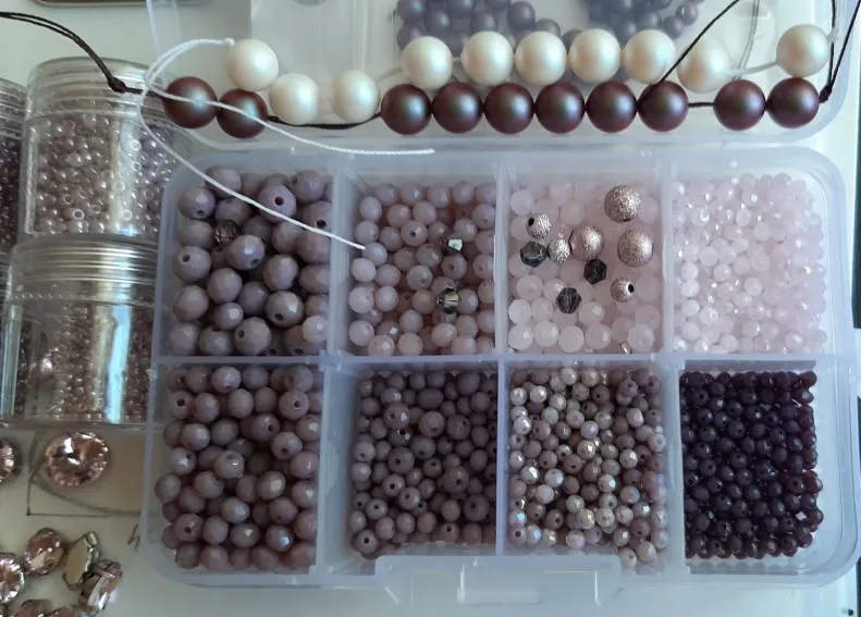 Приятный цвет "Пыльная роза". удобно, что есть разные размеры. Можно скомпоновать изделие по цветовому градиенту и по размеру бусин. Делаю броши, и разные размеры - очень удобно. Фото сделаны пр разном освещении.