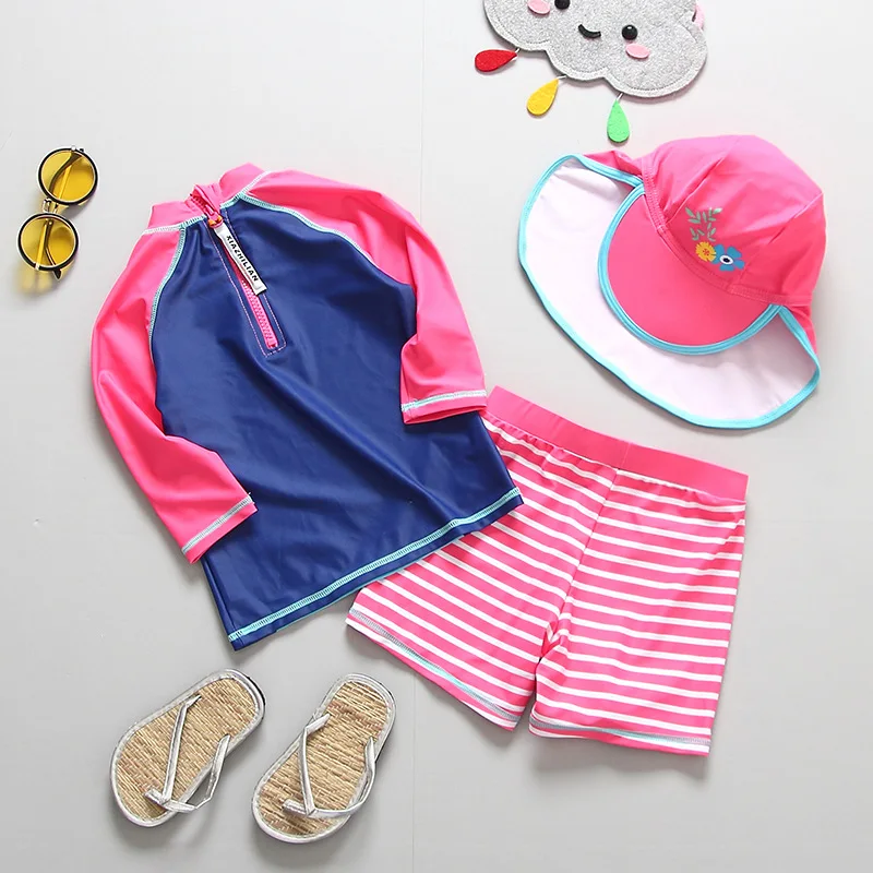 Купальник с единорогами для девочек из 2 предметов, набор Рашгард с шапочкой, купальник с длинными рукавами для девочек, комплект УФ UPF 50 + От 2 до 9 лет
