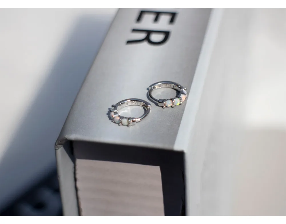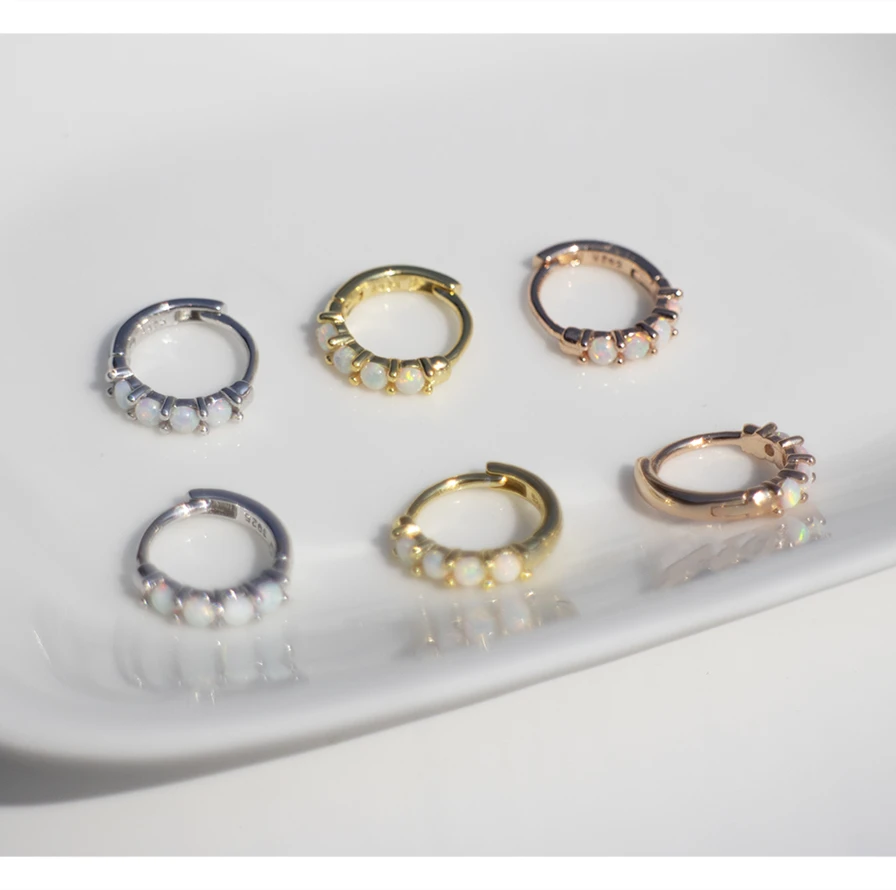 Женские серьги с опаловым камнем, модные мини-серьги из стерлингового серебра 925 пробы с пряжкой для ушей, очаровательные ювелирные украшения для девочек