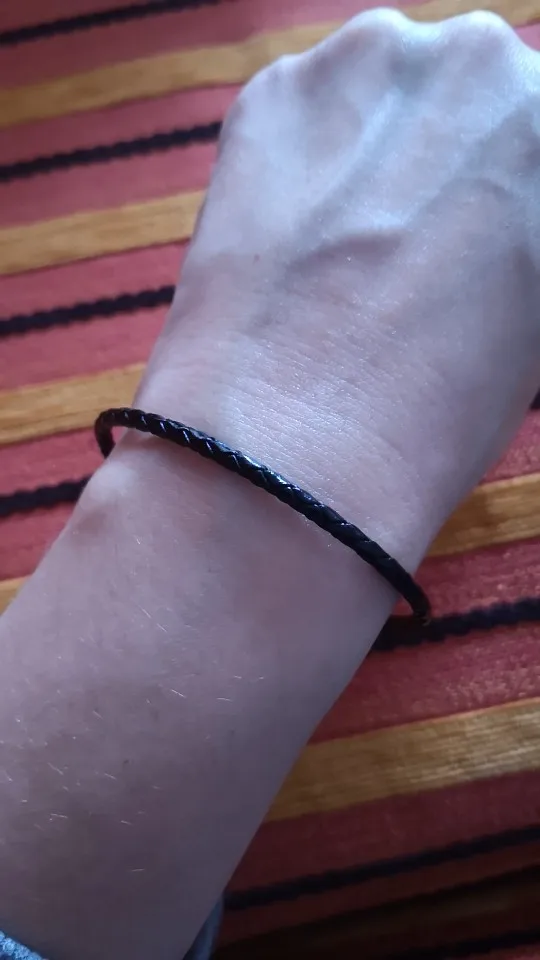 Очень красиво, даже больше, чем на картинке. Меры верны. Это кожа и металл, я не знаю, будет ли она серебристой, но я использую ее в течение нескольких дней, не снимая ее, и это все равно как первый день. Доставка была быстрой и через несколько дней я был дома.