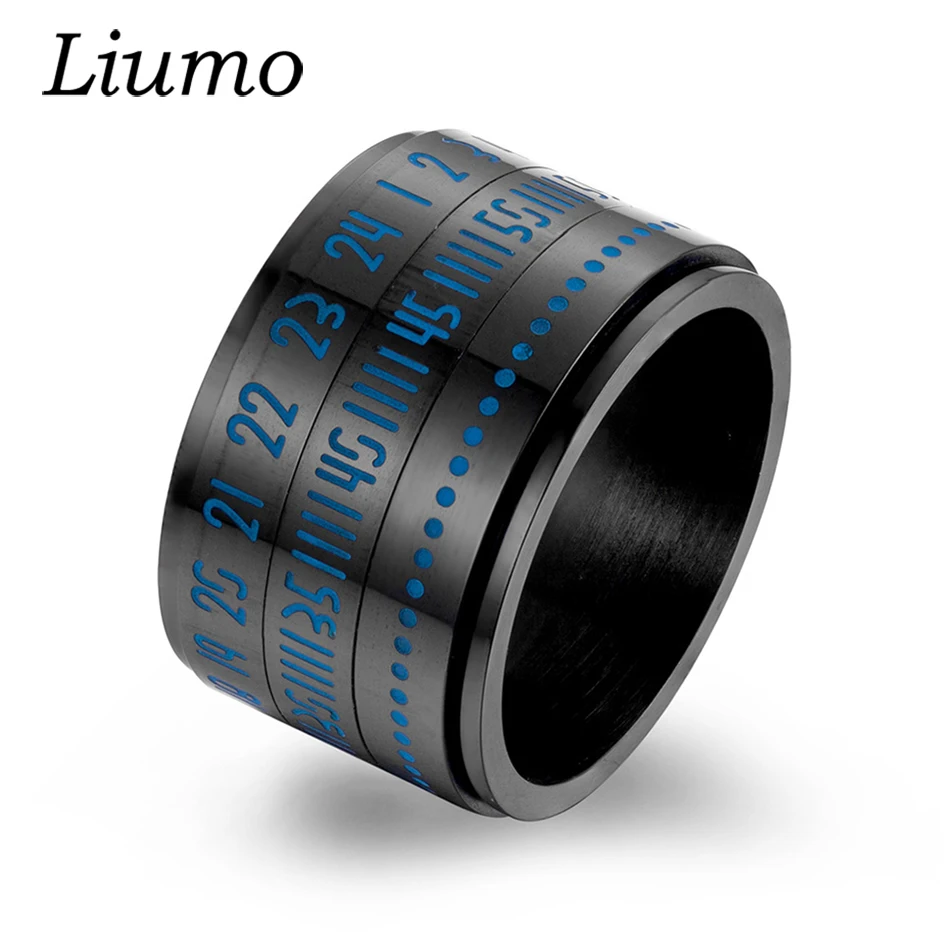 Liumo трендовый вращающийся светится в темноте синий светильник, показывающий цифры, мужское байкерское кольцо из нержавеющей стали 316L Lr1126