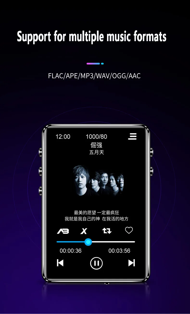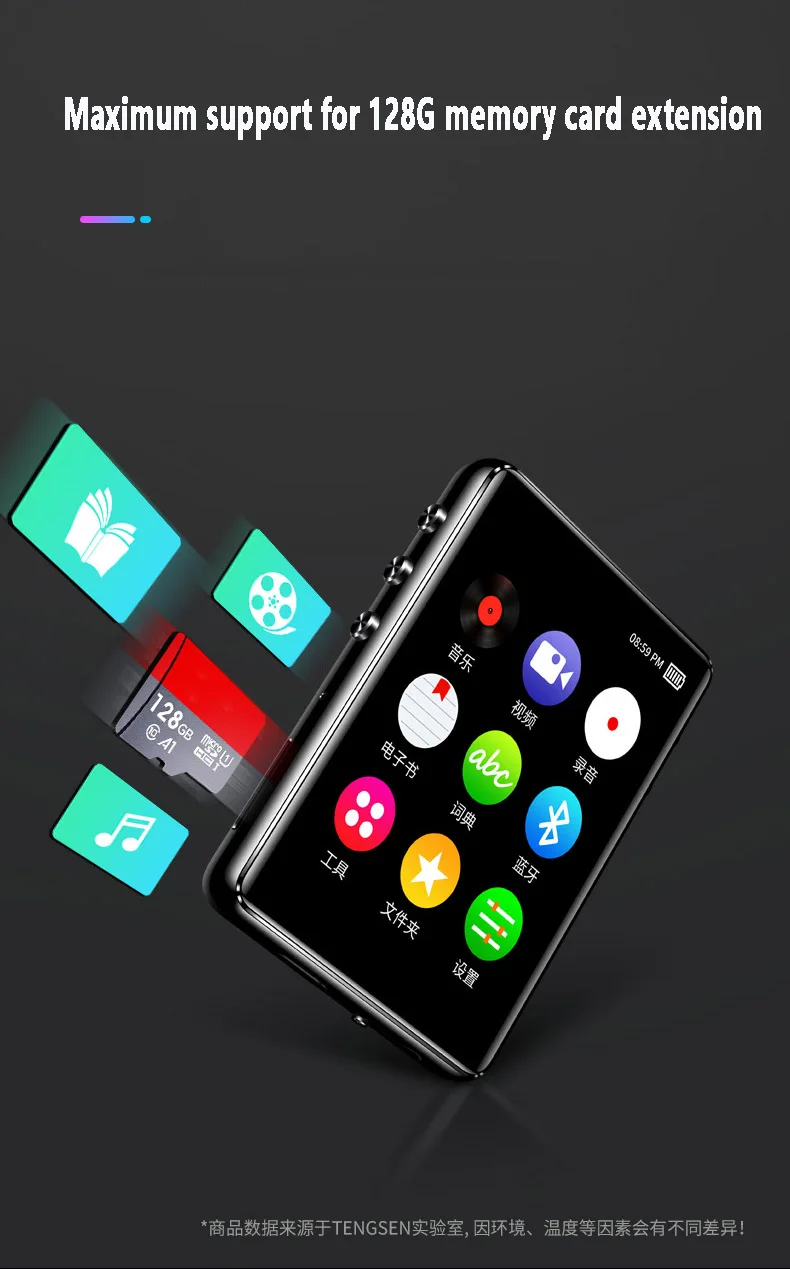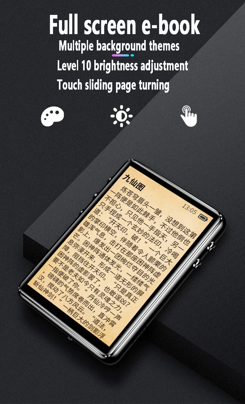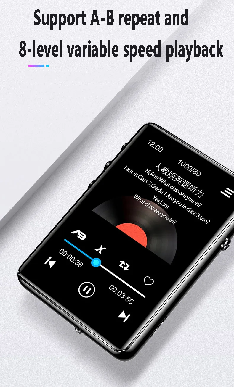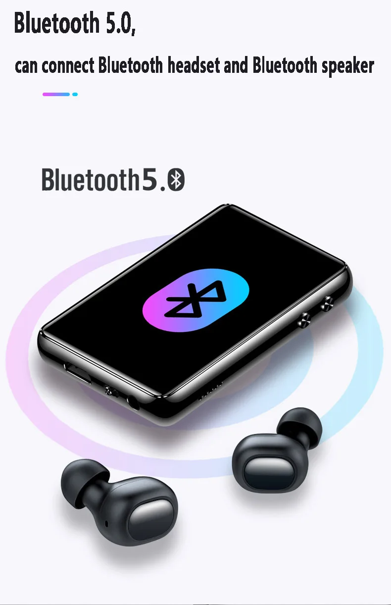 MP3-плеер Bluetooth 5,0, полноразмерный сенсорный экран 2,4 дюйма со встроенным динамиком, электронная книга, радио, запись и воспроизведение видео, будильник