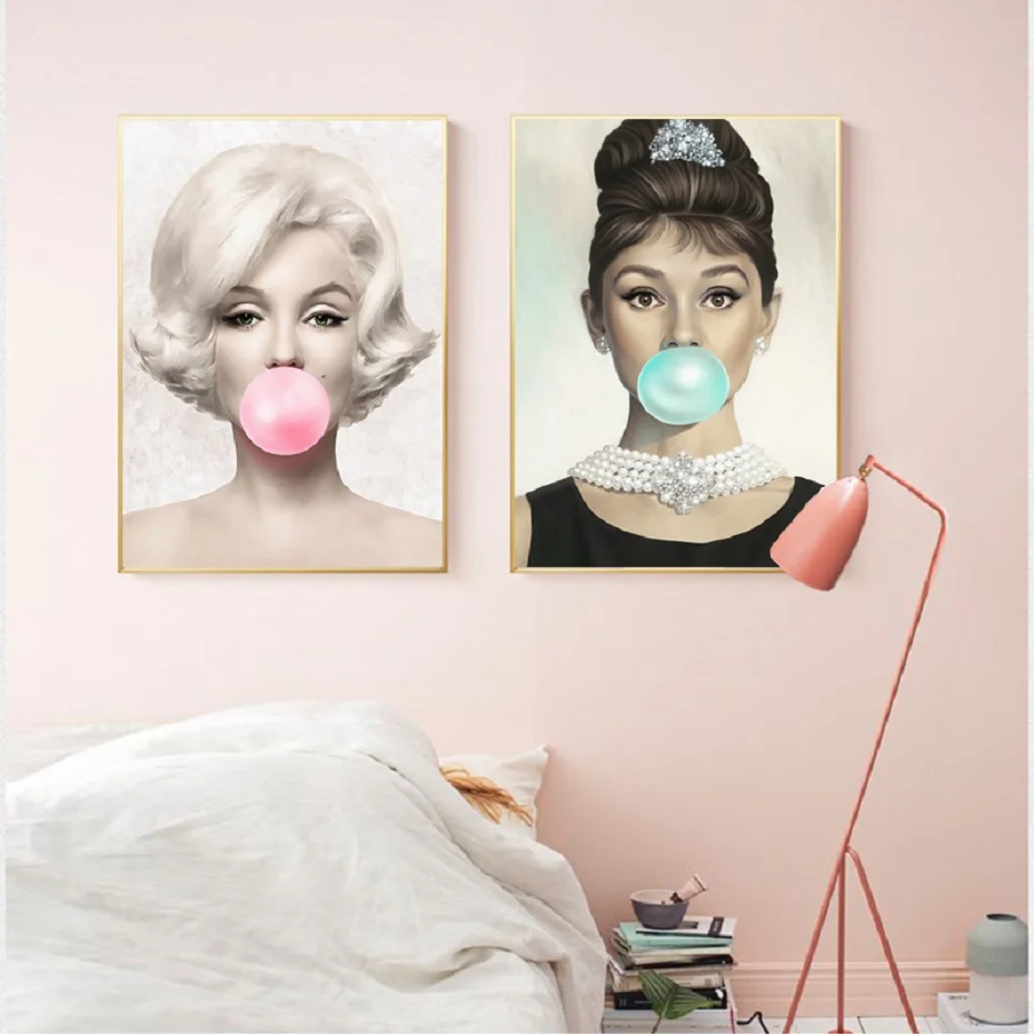 Настенная картина Одри Хепберн с изображением жвачки и звезд, скандинавский холст, модные Плакаты для девочек, постеры для комнаты, картины, картины, домашний декор
