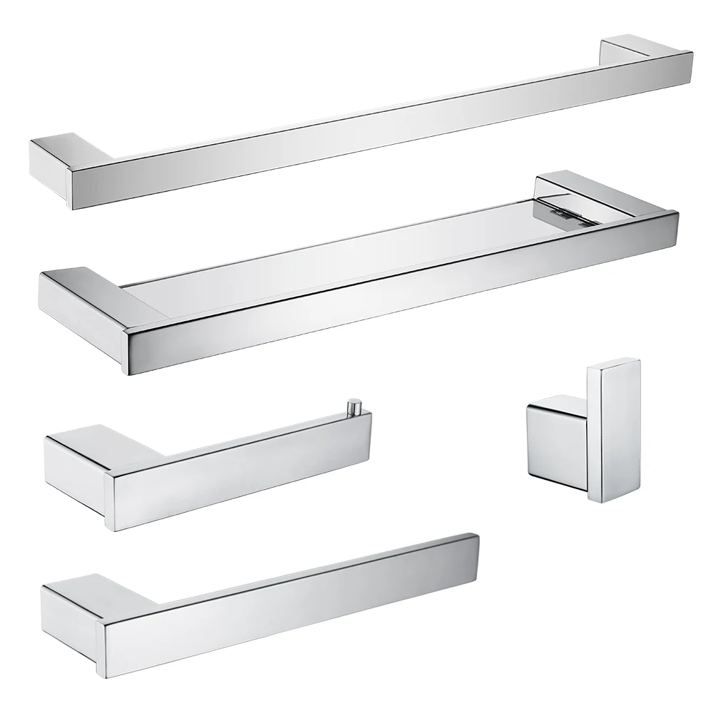 Набор инструментов для ванной из нержавеющей стали, зеркальная хромированная полированная стеклянная полка, держатель для туалетной бумаги, крючок для полотенец, аксессуары для ванной комнаты