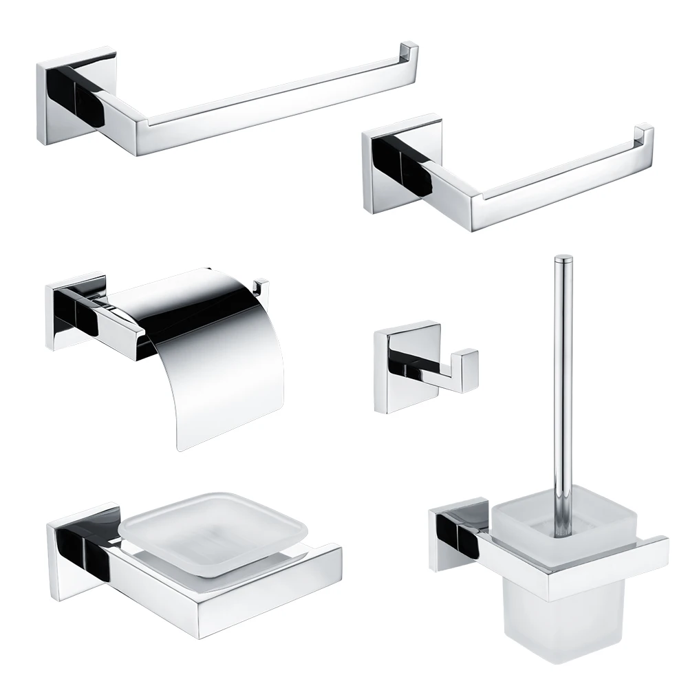 Особенности и характеристики:Набор аксессуаров для ванной комнатыПолотенцесушитель/кольцо для полотенец/держатель для туалетной щетки/держатель для бумаги/мыльница/Крючок для халатаМатериал: Прочная нержавеющая сталь SUS 304Использование: ванная комната/душевая комната/туалетОтделка: высококачественное хромированное покрытиеТип: аксессуары для ванной комнатыУстановка: НастенныйВключая все монтажные фитинги
