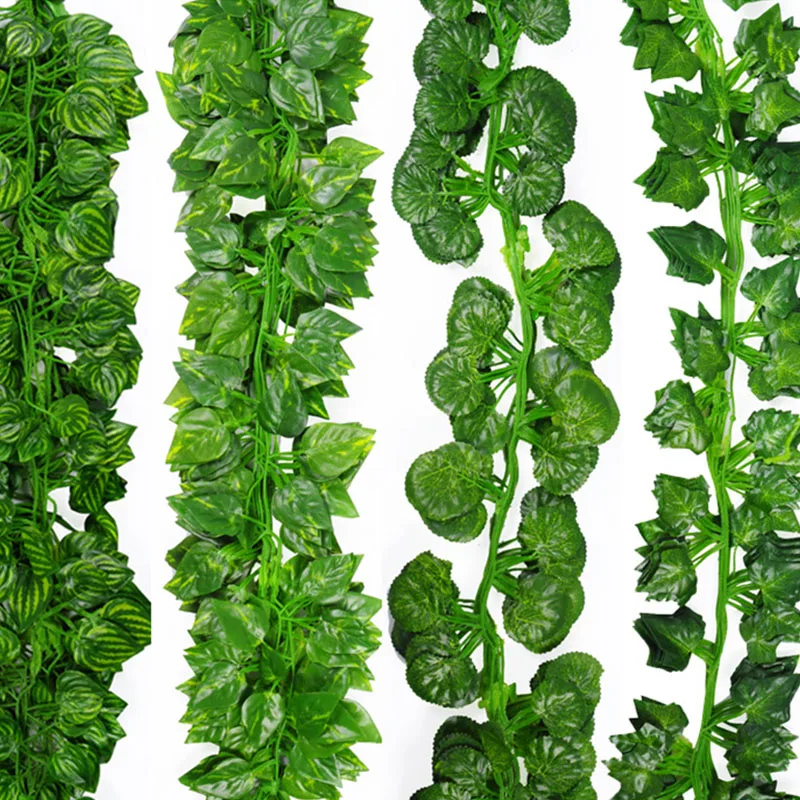 Искусственная Шелковая Роза 200 см, поддельные зеленые листья плюща для семейного свадебного декора, оптовая продажа, подвесные цветы сделай сам