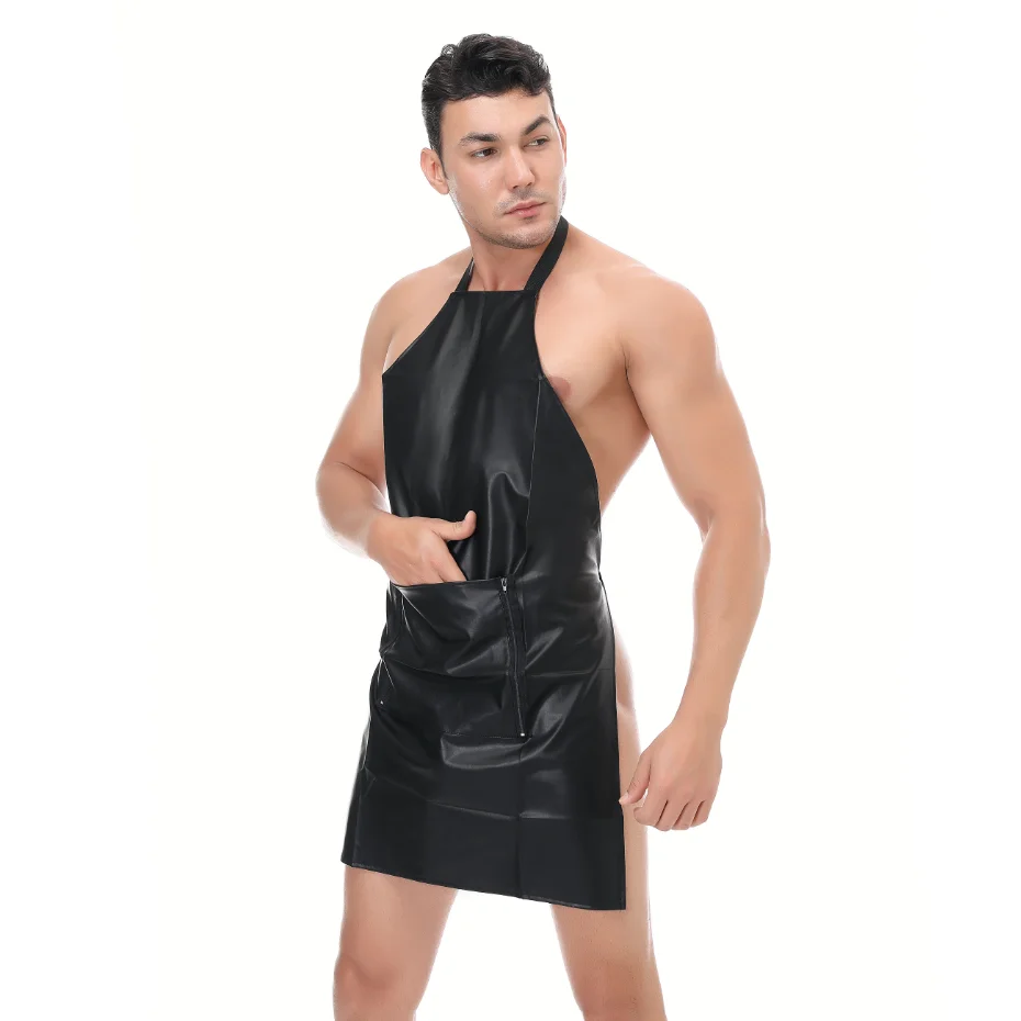 Сексуальное мужское нижнее белье размера плюс, кожаный комбинезон, латексный Мишка, комбинезон, фартук, косплей боди с открытой промежностью, чулки, Сексуальная Клубная одежда для мужчин