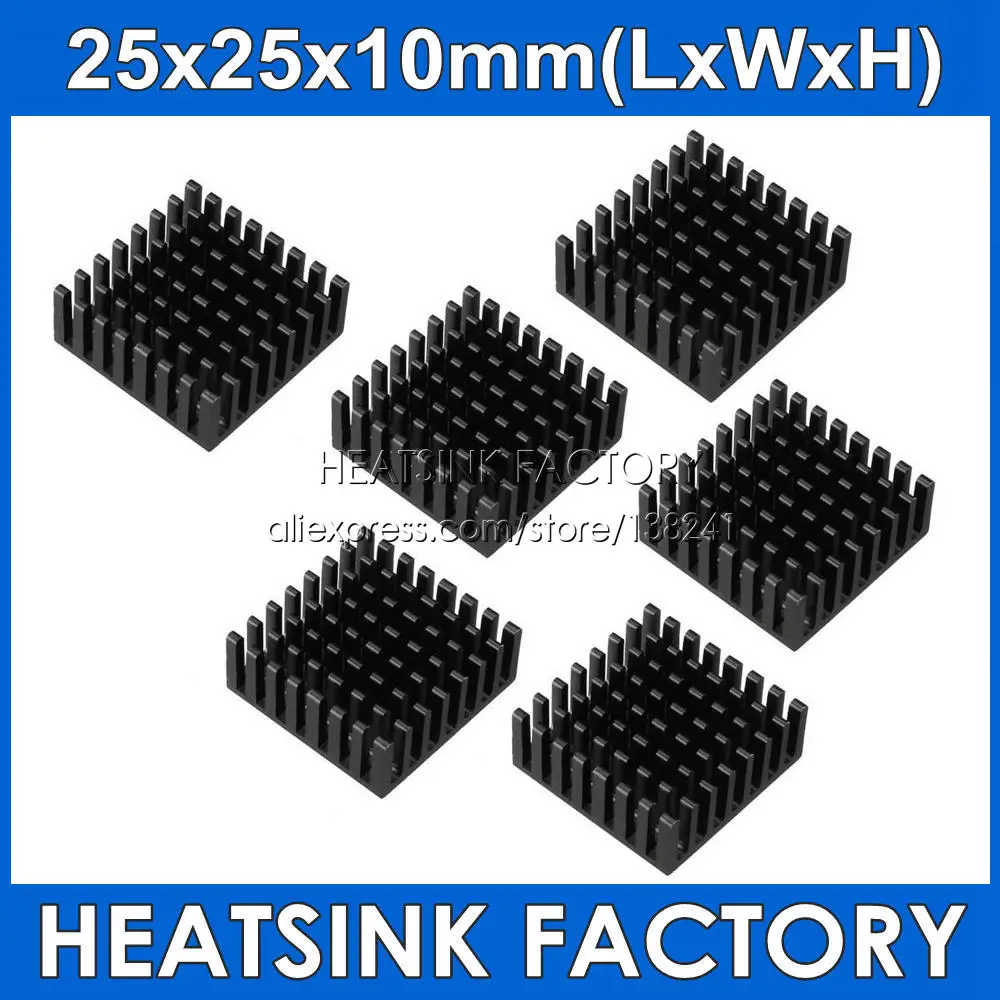 5 шт.лот серебристыйчерный 25x25x10 мм алюминиевый радиатор IC Радиатор для чипа IC ЦП охлаждение