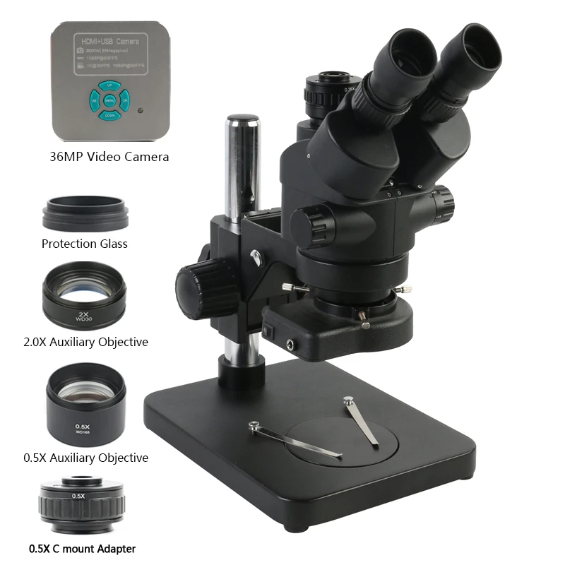 Тринокулярный микроскоп, видеокамера 36MP HDMI для сварки стерео, 3,5x 7X 45X 90X, siмультифокальный адаптер 0,5x CTV, инструменты для ремонта телефонов