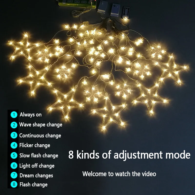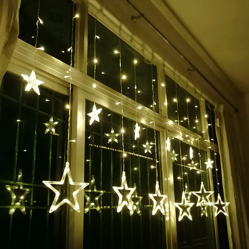Светодиодная гирсветильник-занавес в виде пентаграммы, лампа-занавеска в виде звезд, сказосветильник украшение для дома, свадьбы, дня рождения, Рождества, светильник ционное управление