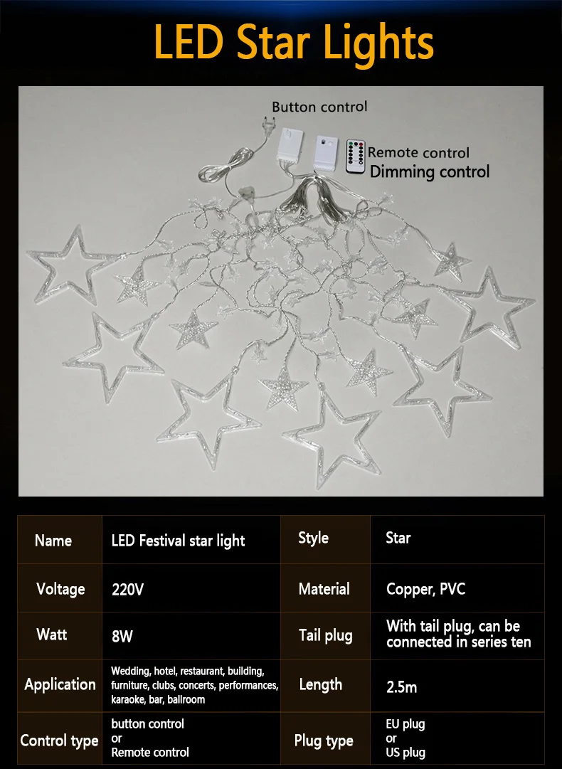 Праздничные огни могут легко построить фестиваль или вечерние ощущения. Идеально подходит для украшения вашего дома, комнаты, сада, дерева и т. д. Идеально подходит для Рождества, свадьбы, церемонии и других праздников и мероприятий. Различные наборы могут быть соединены вместе. Экономия энергии и денег и защита окружающей среды. Установите режим, который вам нравится, нажав маленькую кнопку на блоке управления.