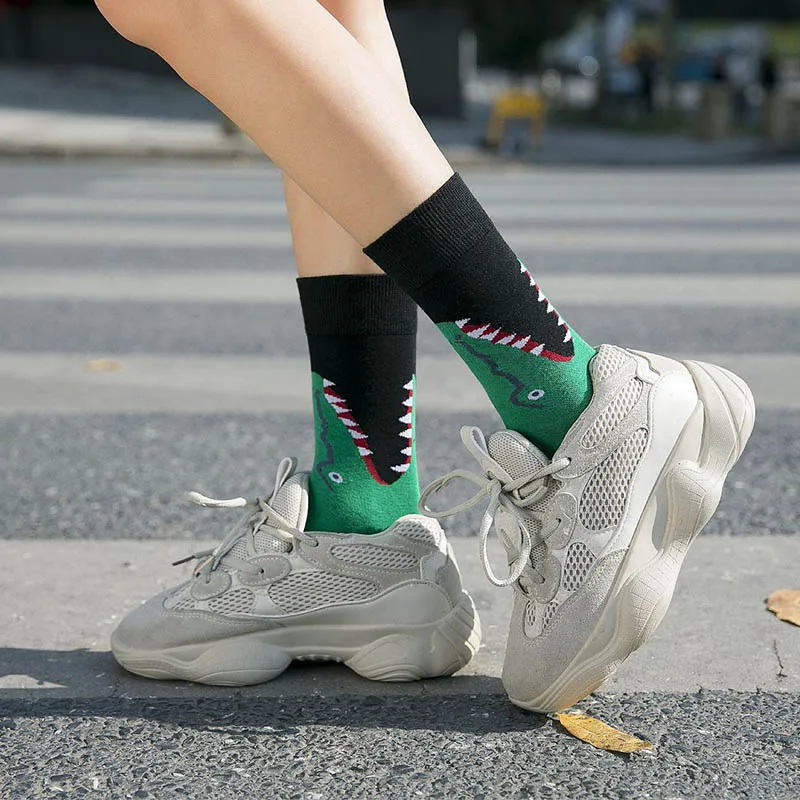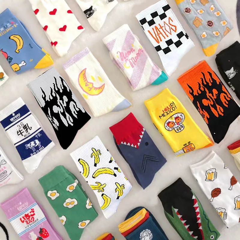 Носки женские, с рисунком банана, клубники, животных, носки с пламенем