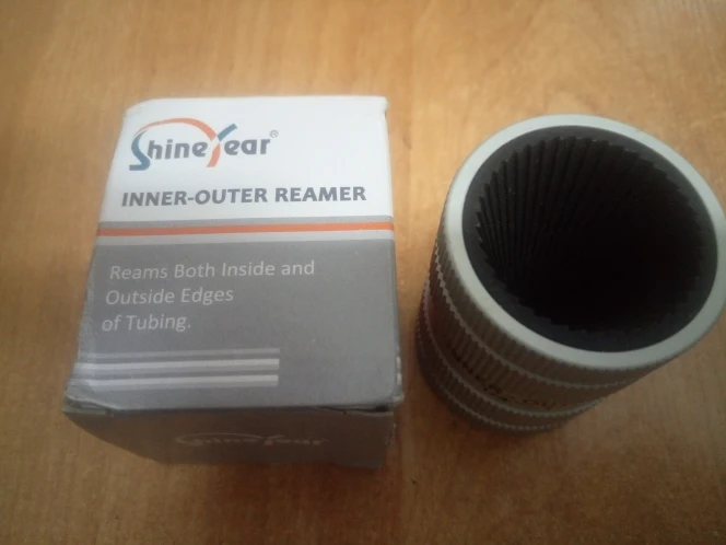 Расширитель прибыл быстро. Это занимает всего 6 дней до Финляндии. И расширитель имеет хорошее соотношение цены и качества. Выглядит хорошо, а края-очень прочный материал. Он даже режет пилу цепи (см. Фото). Я могу найти очень небольшую одежду после стальных труб, но не много. Он нуждается в некоторой силе, поэтому он не очень прост в использовании, но затем он также не занимает слишком много материала. Я пометил концы красными и зелеными маркерами, потому что они были teally esdy, поэтому быстро видно, какой конец внутренний и какой внешний. Он также украшает красивый товар еще красивее.