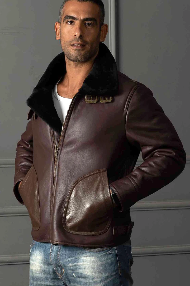 Мужская куртка из натуральной овечьей кожи, теплая куртка-бомбер большого размера B3 в стиле милитари с мехом, 8015