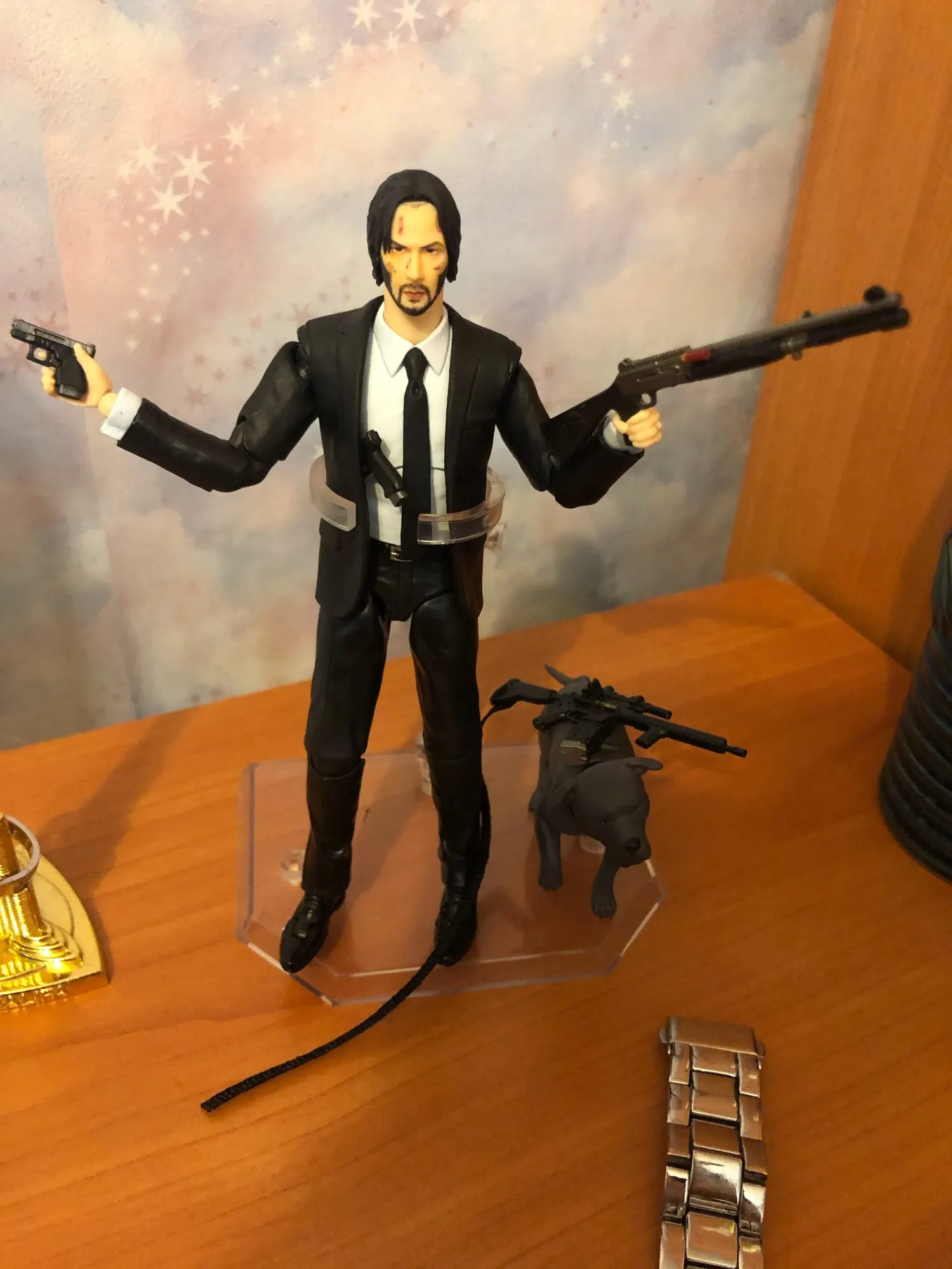 Очень доволен игрушкой, сходство с Кианну Ривзов очень большое) Также все оружее и костюм детализированные, проблем с лицом нет. Прислали не в коробке(но при этом картонка из которой иожно сделать упаковку есть в комплекте, правда сильно помята)я готов