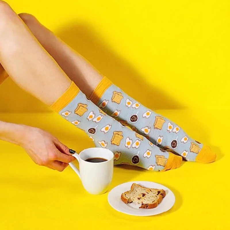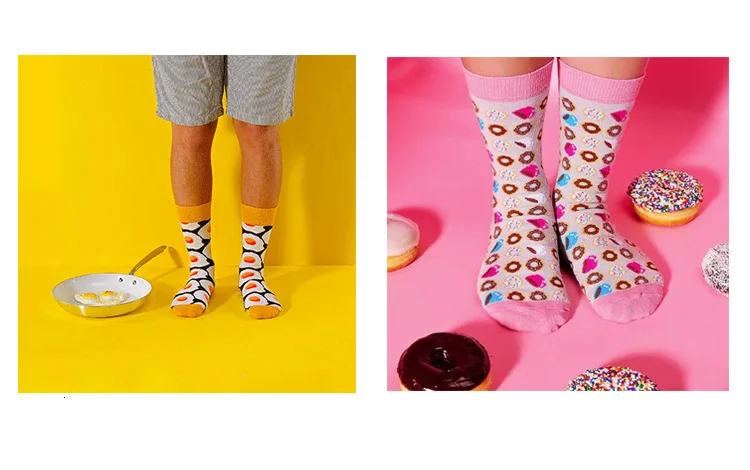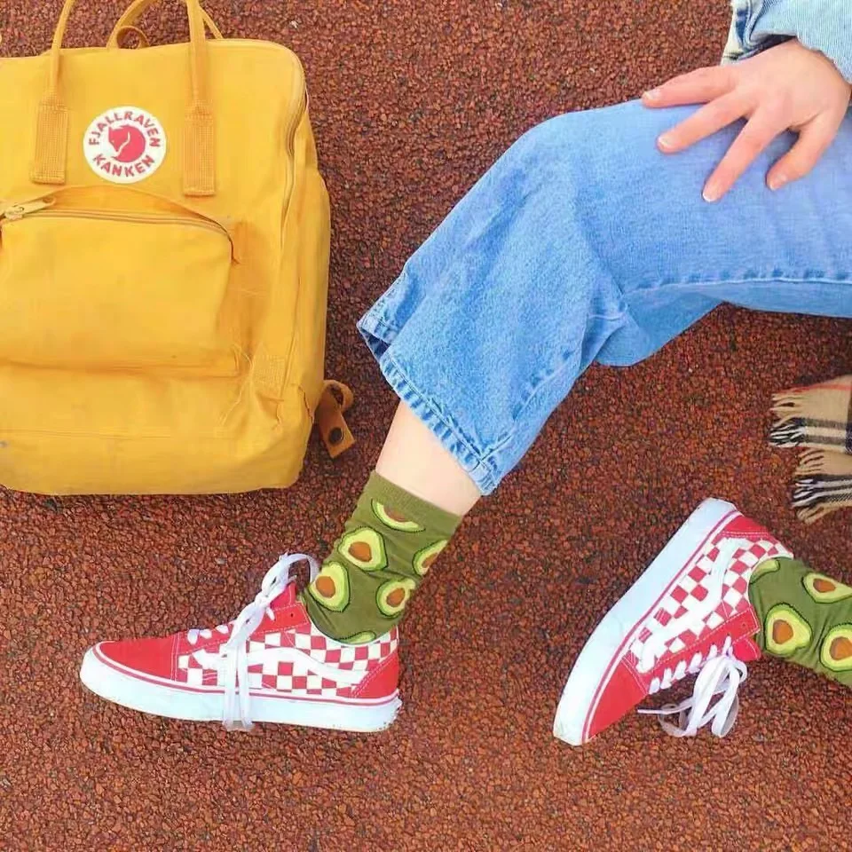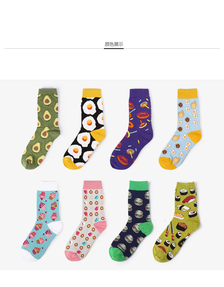 Носки женские, забавные, в японском стиле Харадзюку, для скейтборда, фруктов, бананов, авокадо, лимона, яиц, пончиков