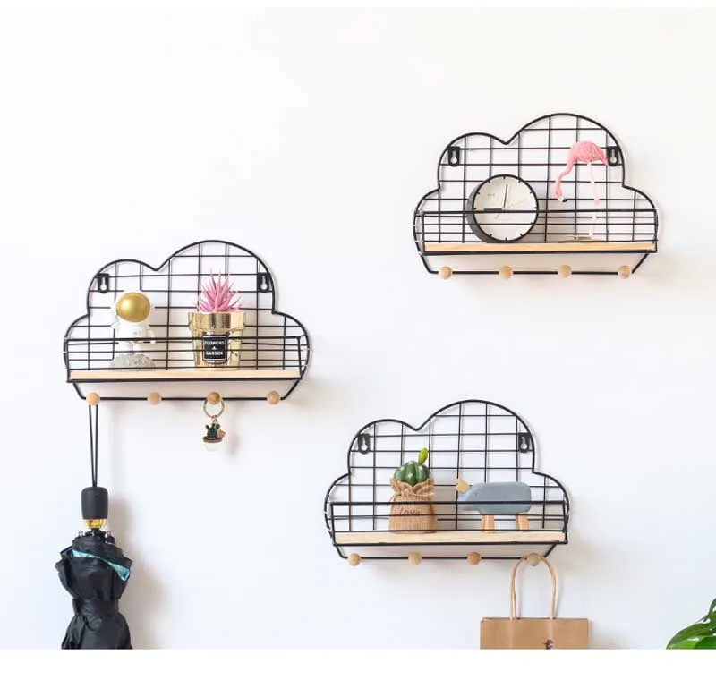 Скандинавские железные облака сетки настенная полка комбинации настенные подвесные украшения многофункциональная стойка для хранения для дома гостиной спальни