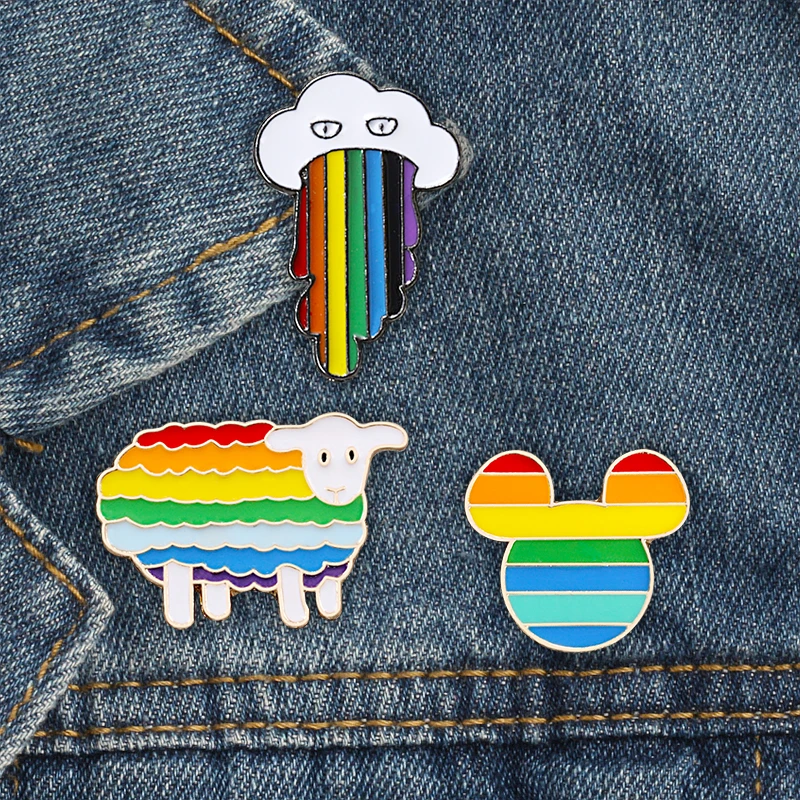 Брошь на лацкан с изображением героев мультфильма, флага, овцы, мыши, эмалированные булавки, лесбиянки, геи, значок гордости, подарок для одежды, 2-3 шт.набор, с изображением ЛГБТ-радуги