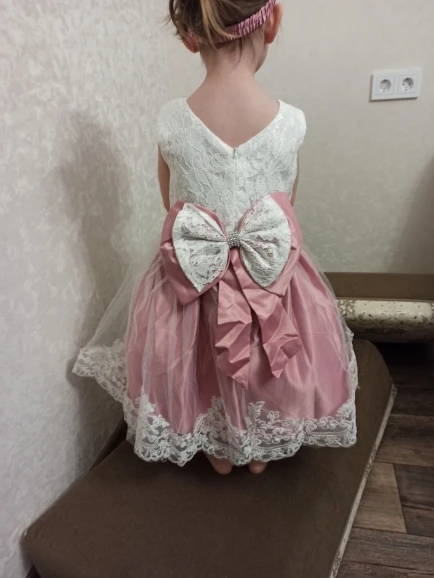 очень красивое платье, подкладка верха хлопок, внизу подкладочная ткань. По качеству платье очень хорошее, у нас такие стоят в 3-4 раза дороже. На рост 100 взяли размер 5Т, немного великовато, но и так уже нам очень нравится. Доставка 14 дней до Рязани.