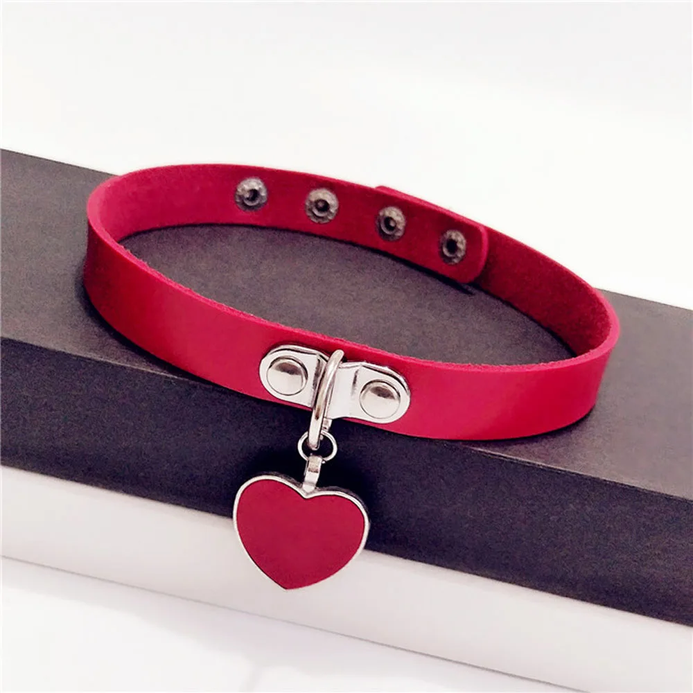 Модное сексуальное панк готическое кожаное чокер с подвеской в форме сердца ожерелье винтажное Очаровательное ожерелье с круглым воротником женское ювелирное изделие