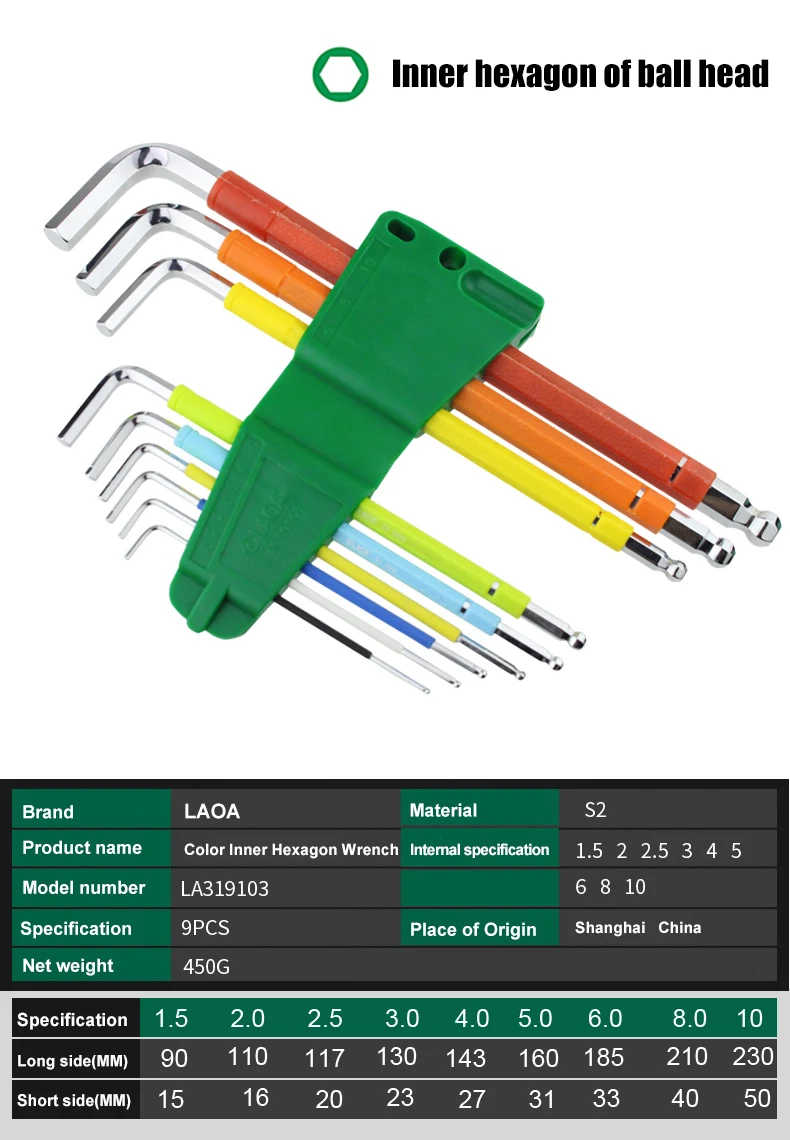 Отвертка с шестигранной головкой, LAOA Inner Набор шестигранных ключей, 9 шт.