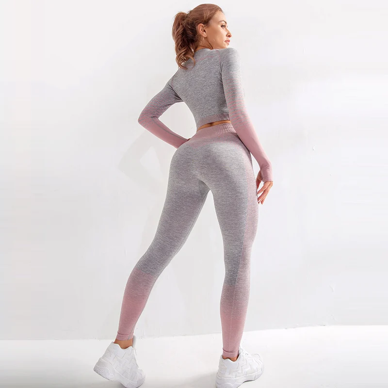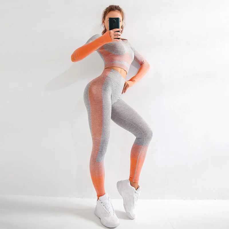 Бесшовный комплект для йоги, женские укороченные топы с длинным рукавом, спортивные Леггинсы с высокой талией для контроля живота, спортивные костюмы для тренажерного зала, одежда для фитнеса