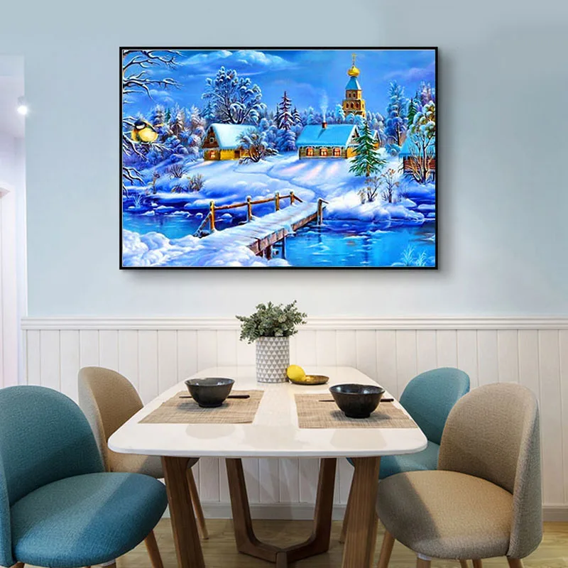 Алмазная вышивка 5D "сделай сам", Снежная сцена, вышивка крестиком,...