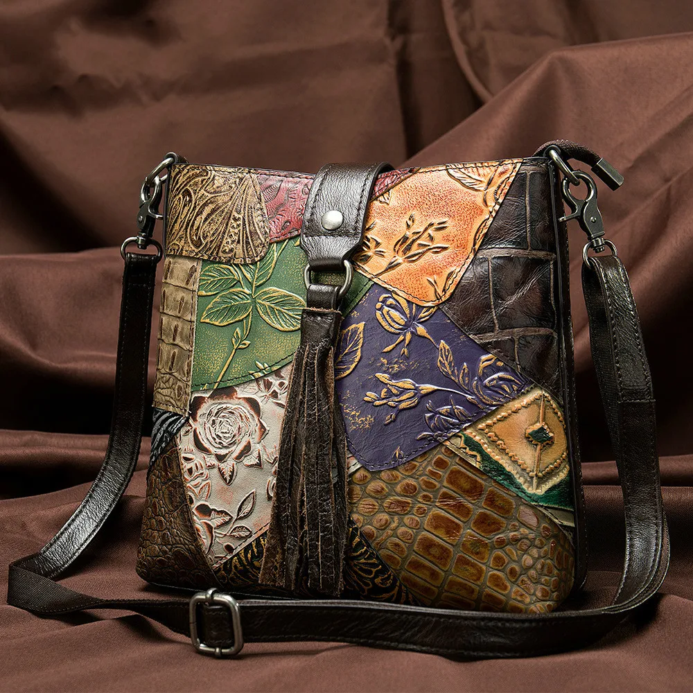 Сумка женская наплечная из натуральной кожи, в стиле пэчворк