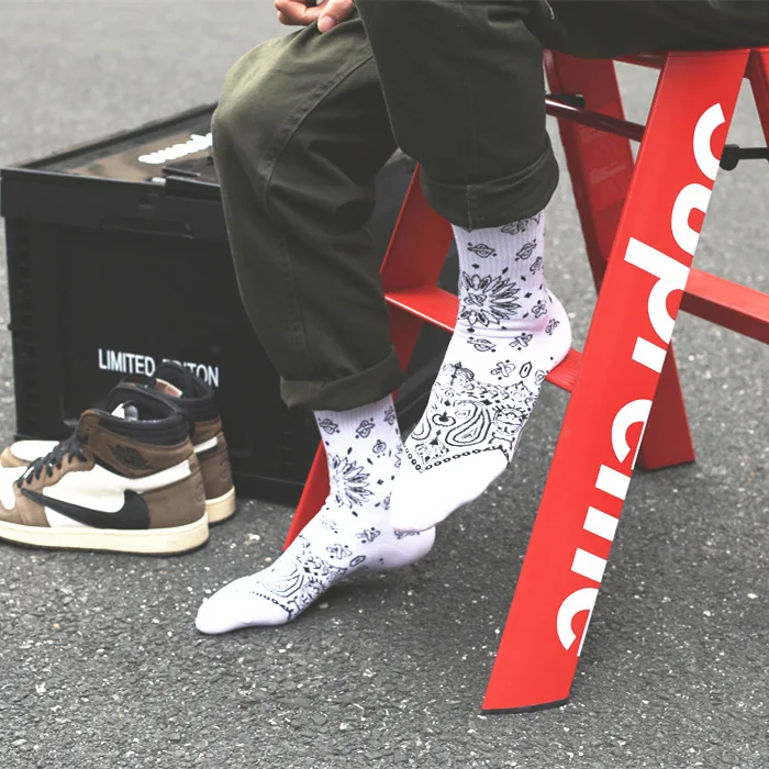 Носки хлопковые для мужчин и женщин, повседневные смешные спортивные для пар, в стиле рэпхип-хоп, Уэст-побережье, с цветком кешью