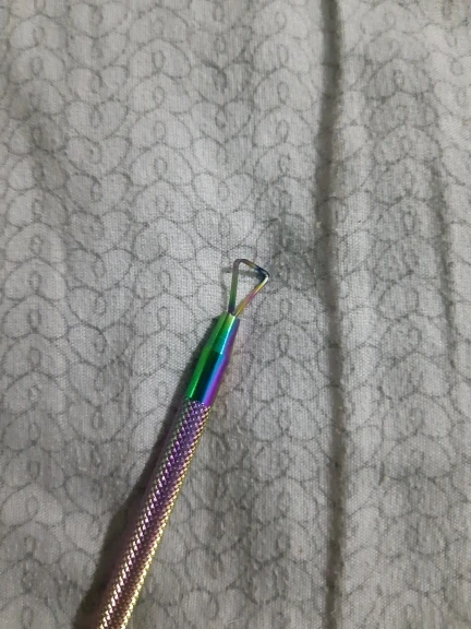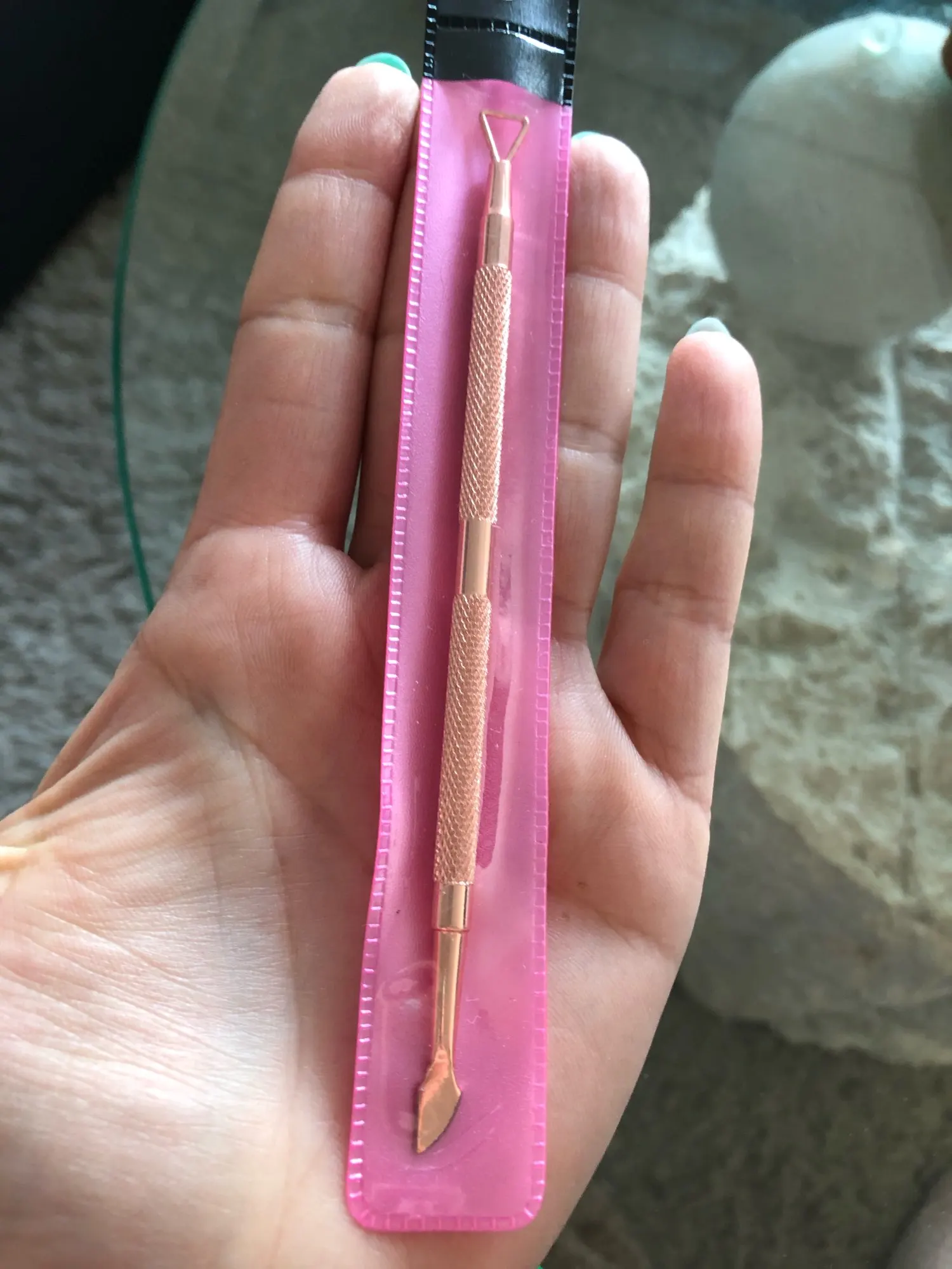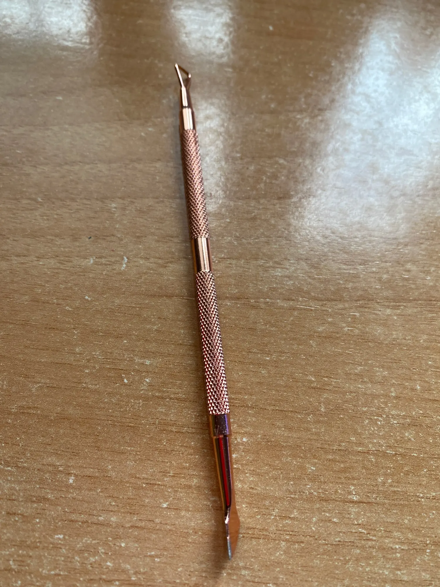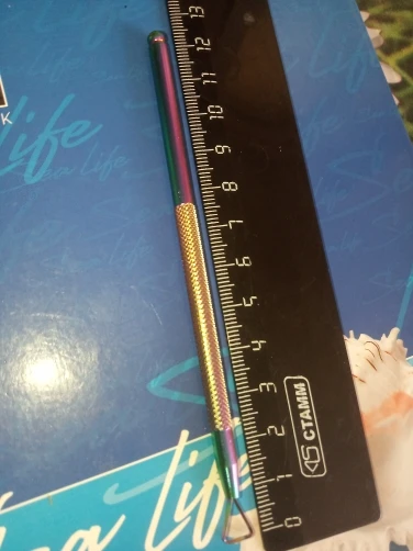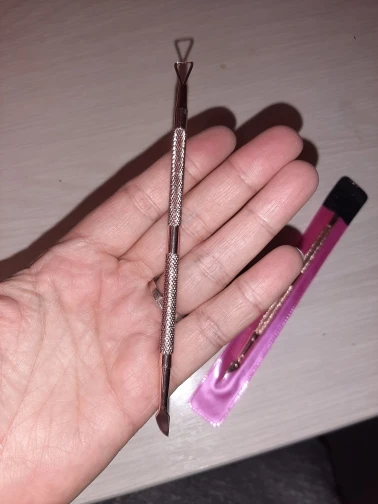 Доставка быстрая. Качество приемлемое, материал лёгкий, на концах не идеально гладкий. Петлей оказалось удобнее снимать гель-лак, чем "топориком" (на другом инструменте, длиннее, чем на этом)