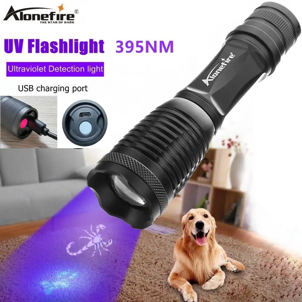 Alonefire E007-C 395nm УФ фонарик светильник перезаряжаемые ультрафиолетовый светильник с переменным фокусным расстоянием Функция УФ черный светильник мочи домашних животных с Красители детектор