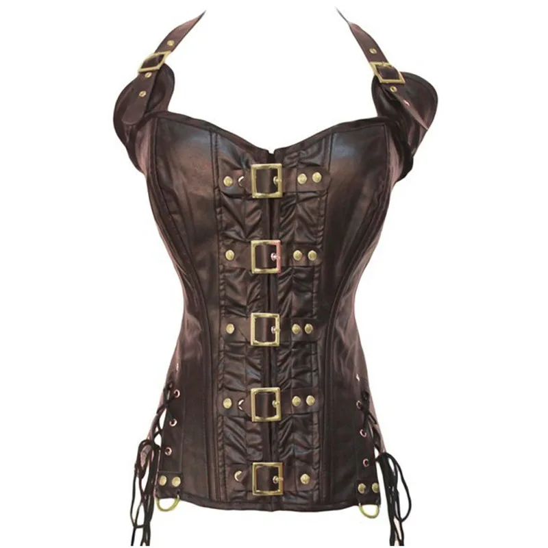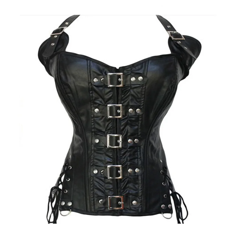 Корсет женский кожаный, с ремешком сзади, в готическом стиле, 2020