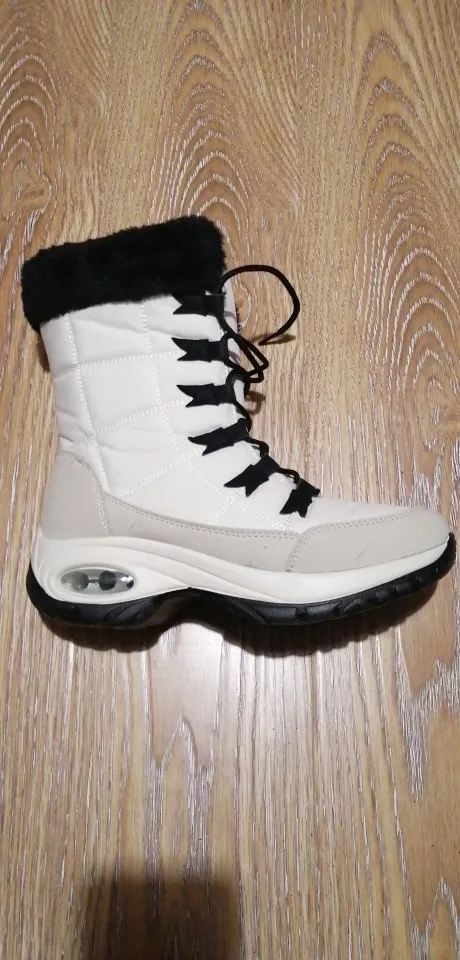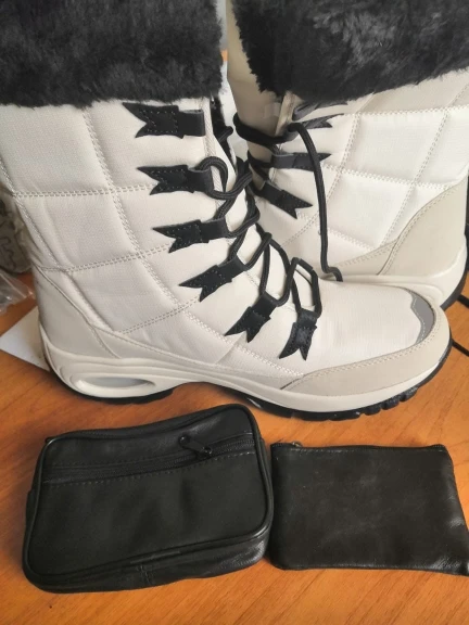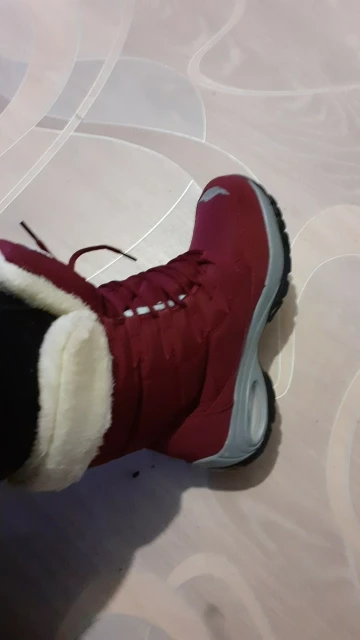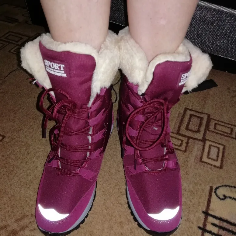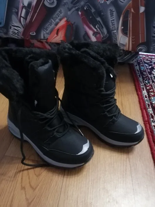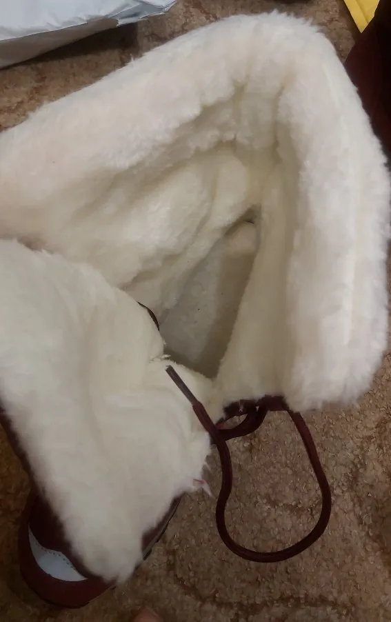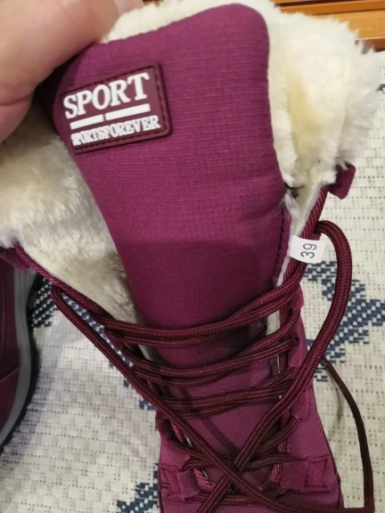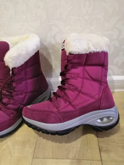 Ботинки отличные! Соответствуют описанию. На свой 38 размер (24,5см) взяла 40. Сели идеально, ещё есть запас для теплого носка. Упакованы хорошо, внутри пластиковые вставки, чтобы обувь не помялась во время транспортировки, поэтому форма ботинок не деформирована. На первый взгляд теплые, проверю в холода, дополню отзыв. Подошва высокая, добавляет росту сантиметров пять)) Интересная амортизация пятки, видимо из-за воздушной прослойки на подошве (видно на фото). Спасибо продавцу за качественный товар, быструю отправку и доставку и за небольшой подарок - резинку для волос!