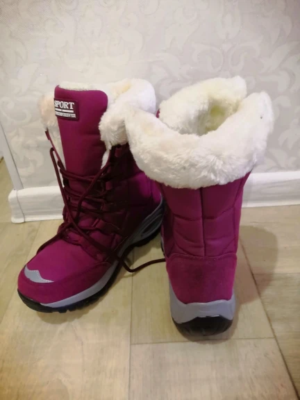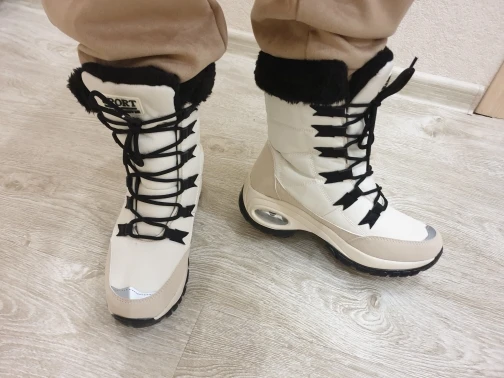 Сапожки хорошие, лёгкие, удобные. Сегодня специально проверила на улице, ногам было тепло. Выглядят на ноге очень аккуратно. Продавцу большое Спасибо. Хотя доставка довольно долгая 1,5 месяца.