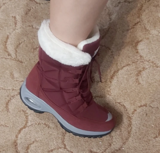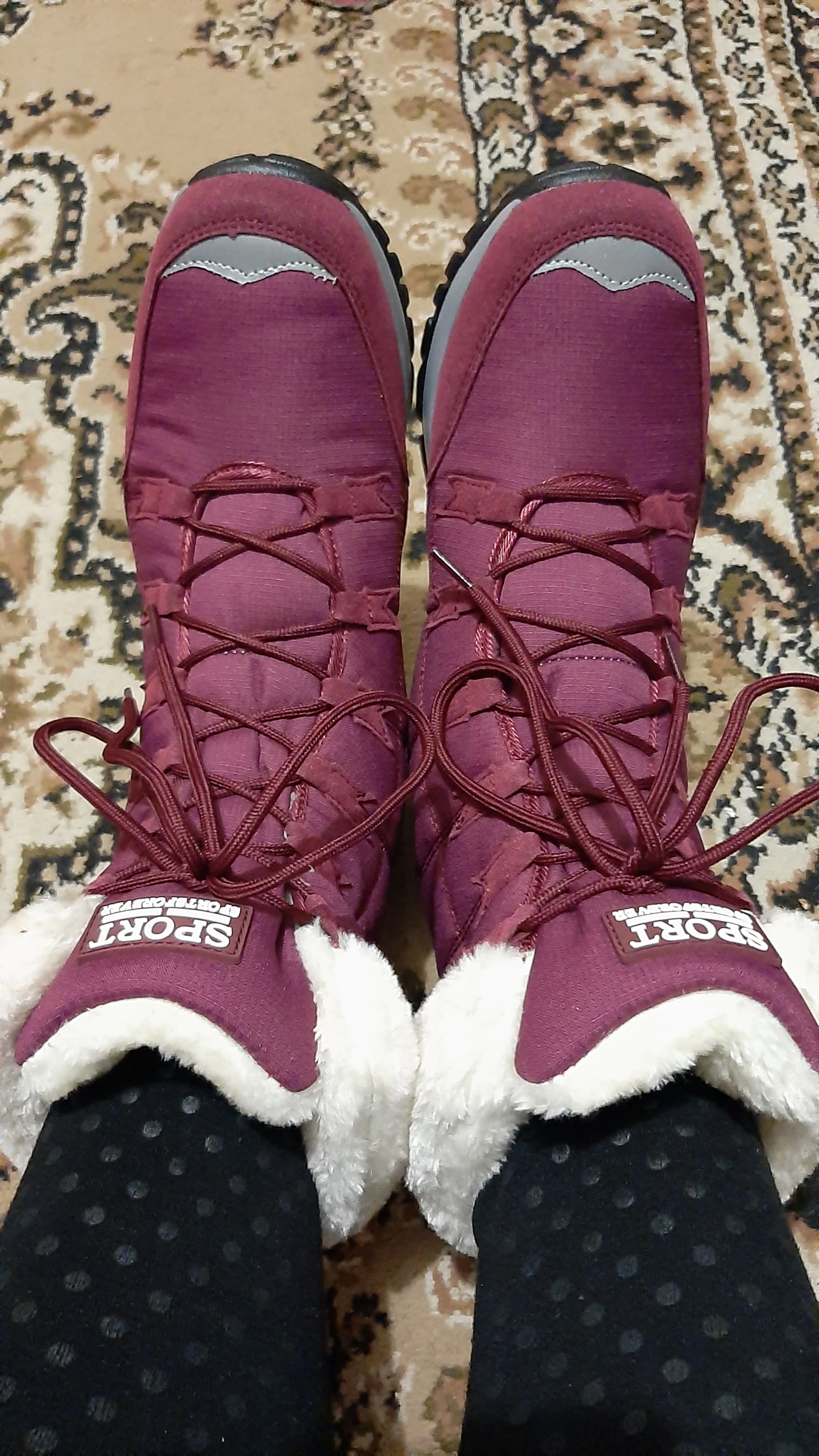 Всем доброго времени суток! Заказ делала 21.09.2020, посылку на почте получила 18.11.2020. Ботинки супер!!! Полностью соответствуют описанию и фото продавца! Упакованы были не плотно, но всё дошло в целости, без повреждений и вмятин. Размер моей стопы 22,7 см, прочитав отзывы, о том, что надо брать на размер больше, заказала размер 6* (это 23,5 по размерной сетке продавца) и они идеально подошли! Большое спасибо всем, кто советовал брать на размер больше! Моим ногам в них комфортно ходить на длительные расстояния, нигде ничего не жмёт, пальцы никуда не упираются! Ботинки очень тёплые (по крайней мере при -1, с обычным носком в них тепло). Мех плотный, не лезет! Материал верха выглядит надёжно. Ботинки прошиты аккуратно. Неприятного запаха не было. Продавец положил маленький сюрприз-резиночку. Большое спасибо :)