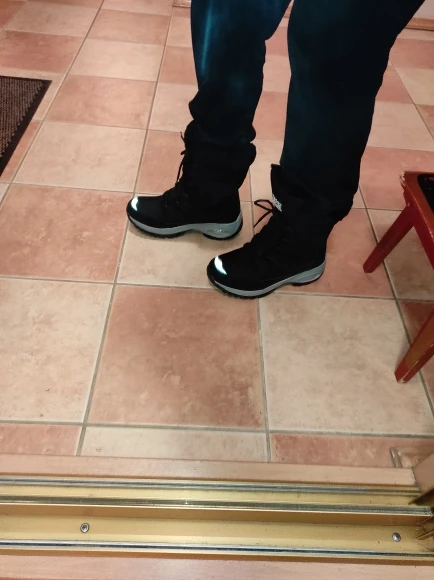 Когда реальность оправдала ожидание. Классные ботинки! Длина стопы у меня почти 25 см, зимнюю обувь взяла бы в России 38 размер. Здесь взяла 8,5. Не знаю, на сколько были бы меньше с размером 8, может, и они бы подошли. Но больше точно не нужно. Эти подошли отлично. И достаточно свободные, чтоб надеть теплый носок, или положить утепленную стельку (и, при этом, не задушиться), и не болтаются, даже с тонким носком. Так же шнуровка хорошо регулирует. Стелька в ботинках 258-259 мм. В общем, очень комфортно в них. И лёгкие. В мороз пока не испытывала.