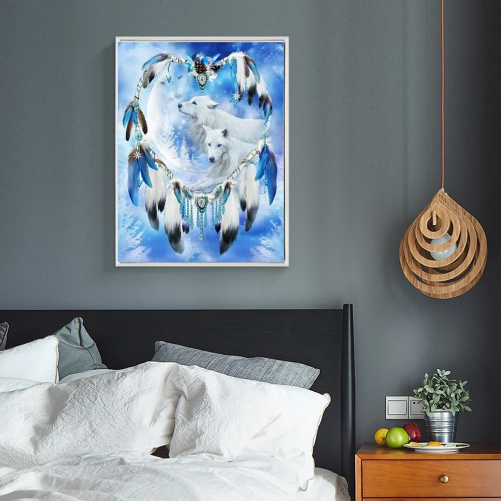 Ловец снов, волк, полная выкладка, квадратныекруглые животные, 5D алмазная живопись, алмазная вышивка, Алмазная мозаика, вышивка крестиком, алмазная вышивка jq115