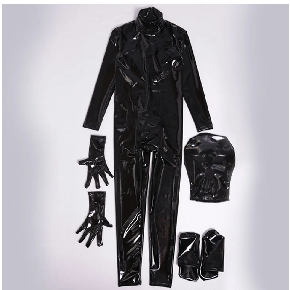 Размера плюс блестящие колготки для косплея из ПВХ Wetlook, полное покрытие Zentai Облегающий комбинезон с длинными рукавами, боди, мужское Корректирующее белье, корректирующий костюм