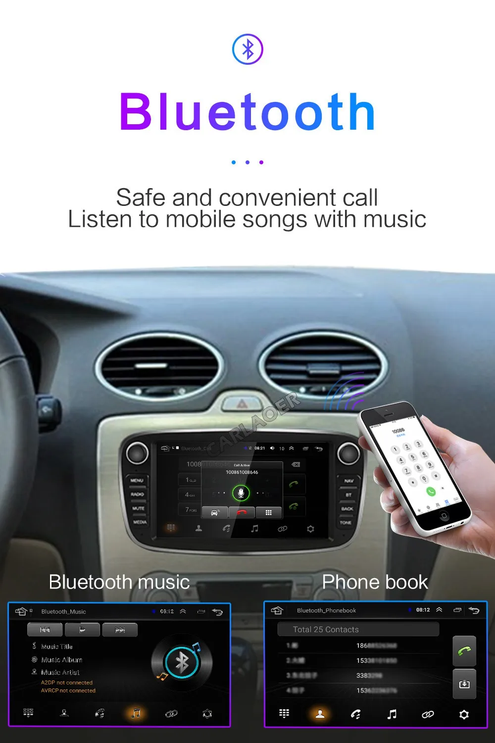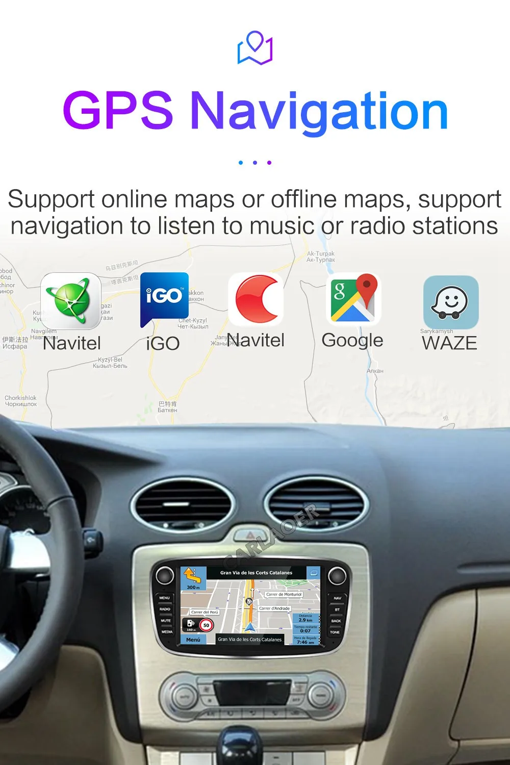 Автомагнитола 2 din, мультимедийный видеоплеер для FordFocusS-MaxMondeo 9GalaxyC-Max, GPS-навигация, Android 9,0, без DVD