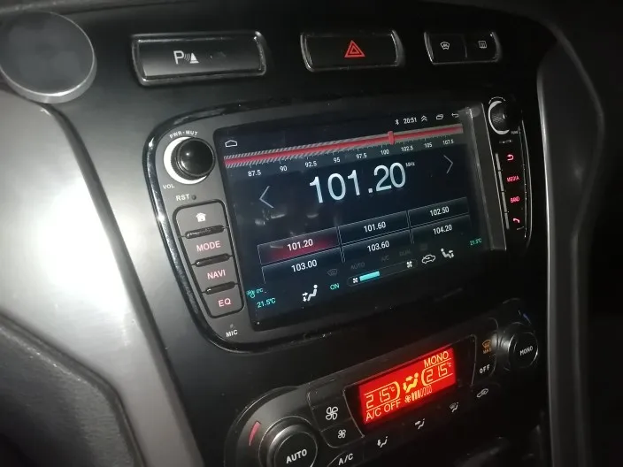 Поставил себе андроид магнитолу, по времени ушло минут 40, камеру заднего вида пока не подключал. В целом мафон не плох. Яндекс навигатор работает, GPS антену поставил на правую боковую стойку лобового, спутники ловит хорошо, usb вывел в бардачок. Радио ловит хуже штатки, даже с переходником под 2 антенны. Звук конечно похуже чем на сони, пробовал пока только слушать через блютуз. С конверса ничего не пропало, кроме компакт диска (стал не активен), название трека не показывает, только радио волны . Кнопки на руле работают. Парктроники работают. Форд мондео 4 2011 год