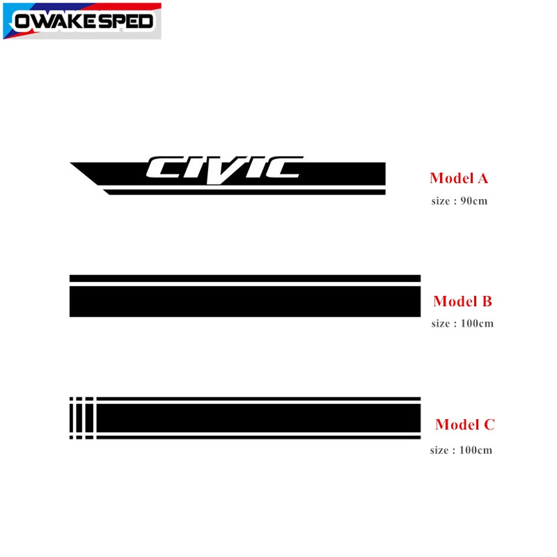 Наклейка на капот автомобиля Honda CIVIC, спортивные полоски для гоночного стиля, декоративные виниловые наклейки для автомобиля, внешние аксессуары