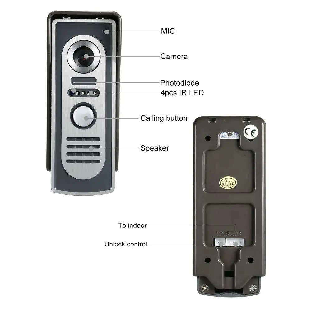Визуальный домофон дверной звонок 7 '' TFT цветной ЖК-проводной видеодомофон Внутренний монитор 700TVL Наружная ИК-камера Поддержка разблокировки