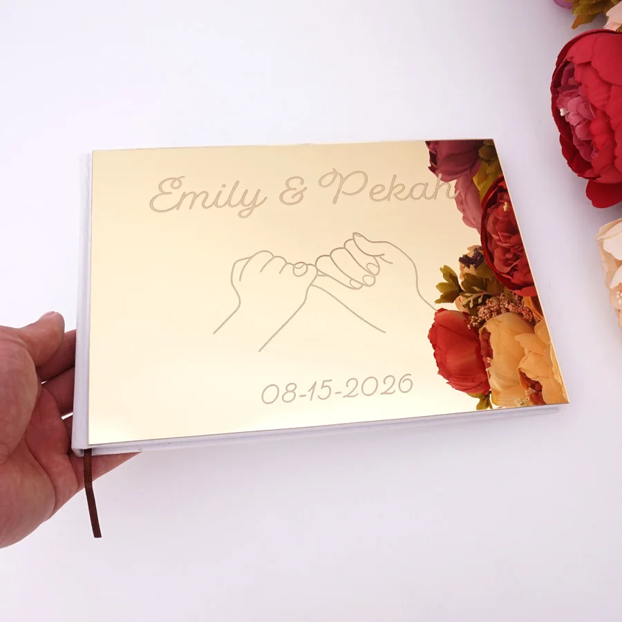 A5 Свадебная Подпись Гостевая книга персонализированные пары зеркал...