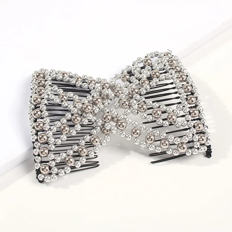 Большая маленькая жемчужная Волшебная заколка для волос, искусственные расчески, бусины, растягивающаяся Двусторонняя заколка для пучка, французский твист-держатель, женские аксессуары для волос